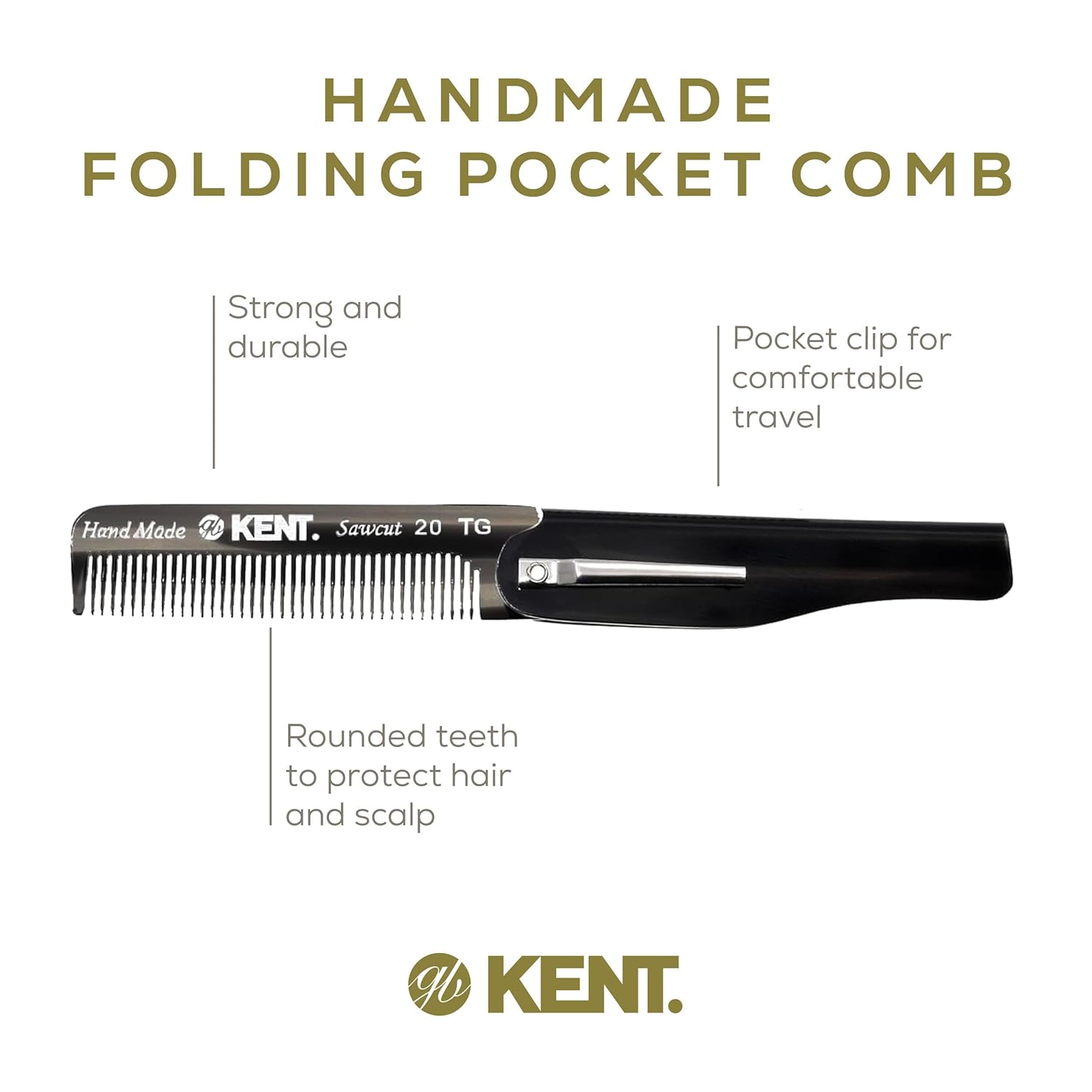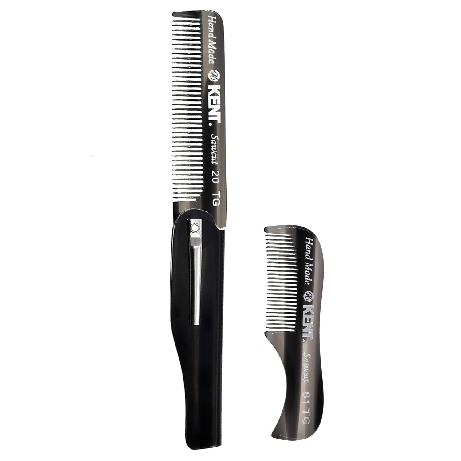 Kent 20T Handmade Fine Tooth Folding Comb + 81T Hand Made Pocket Comb for Beard and Mustache - Beard Growth/Fine Tooth Combs - Beard Straightener Grooming Kit