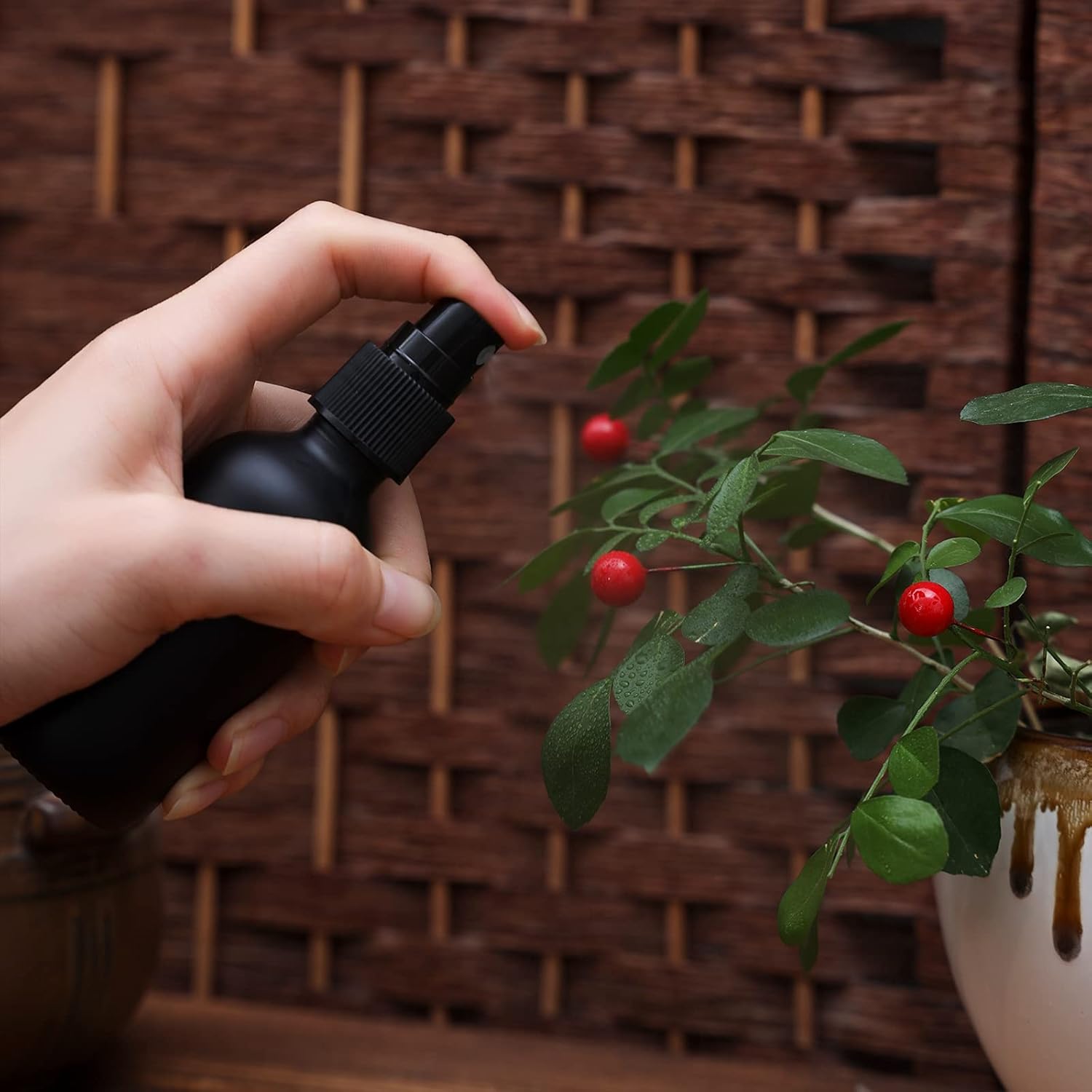 - Protects Light-Sensitive Liquids: The glass bottle is made of corrosion-resistant amber glass, which can effectively filter harmful light. Fine mist heavy-duty sprayer, the black mist sprayer functions great for essential oil spray. Our Bottle is BPA free and lead-free, non-toxic and odorless, with good chemical stability, and can withstand most acid-base erosion
