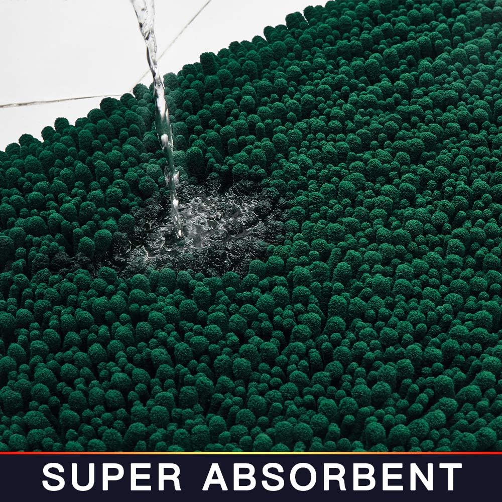 Walensee Large Bathroom Rug Non Slip Bath Mat (72x24 Inch Hunter Green) Water Absorbent Super Soft Shaggy Chenille Machine Washable Dry Extra Thick Perfect Absorbant Best Plush Carpet For Shower Floor