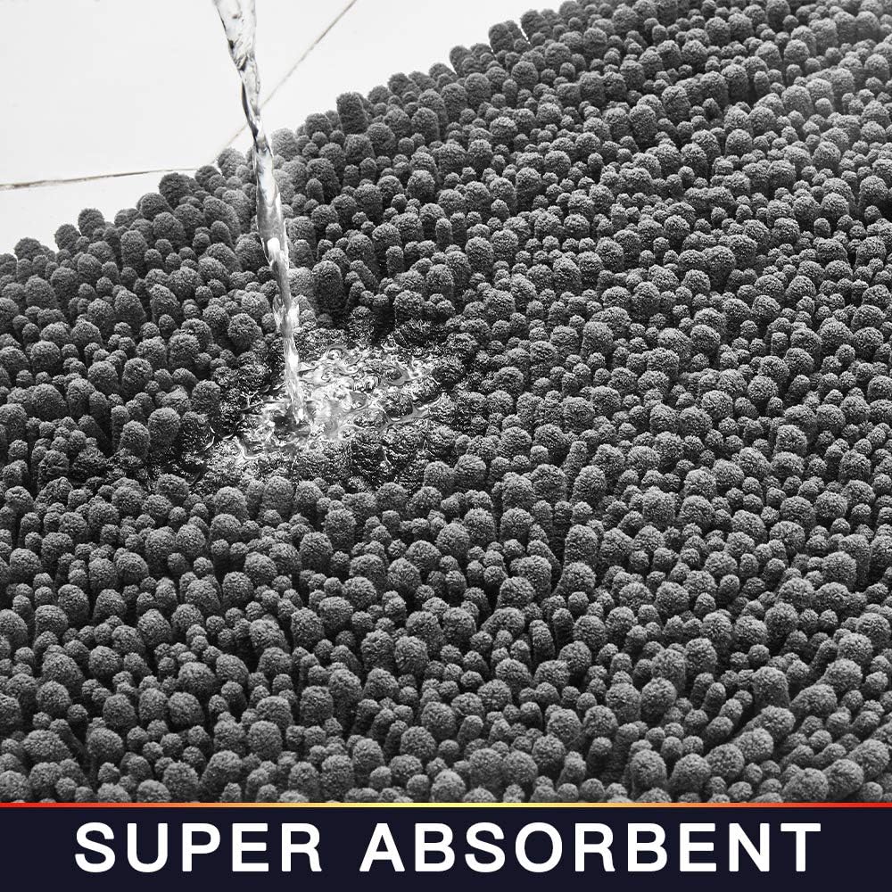 - Ultra Absorbent: The microfiber shag bath rug is much more absorbant than cotton bath rugs. High-pile chenille fabric helps save your floors from dripping water while you’re stepping out of the bath, shower, spa, or getting ready by the sink. Moisture is trapped in the mat’s deep pile, allowing the rug to dry quickly and cleanly.