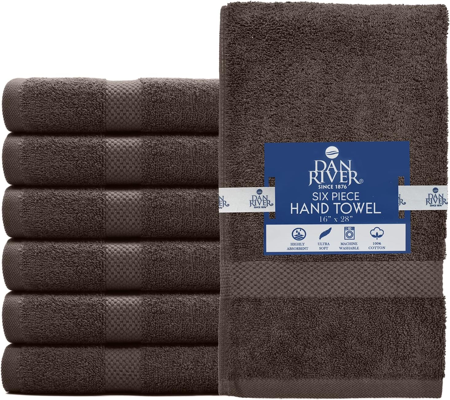 DAN RIVER 6-Pack Premium Hand Towels (16x28 Inches) - 100% Cotton, Ultra Soft, Lightweight, Highly Absorbent Towels for Bathroom, Spa, Gym, Salon, Hotel, and Travel - 550 GSM โ Brown