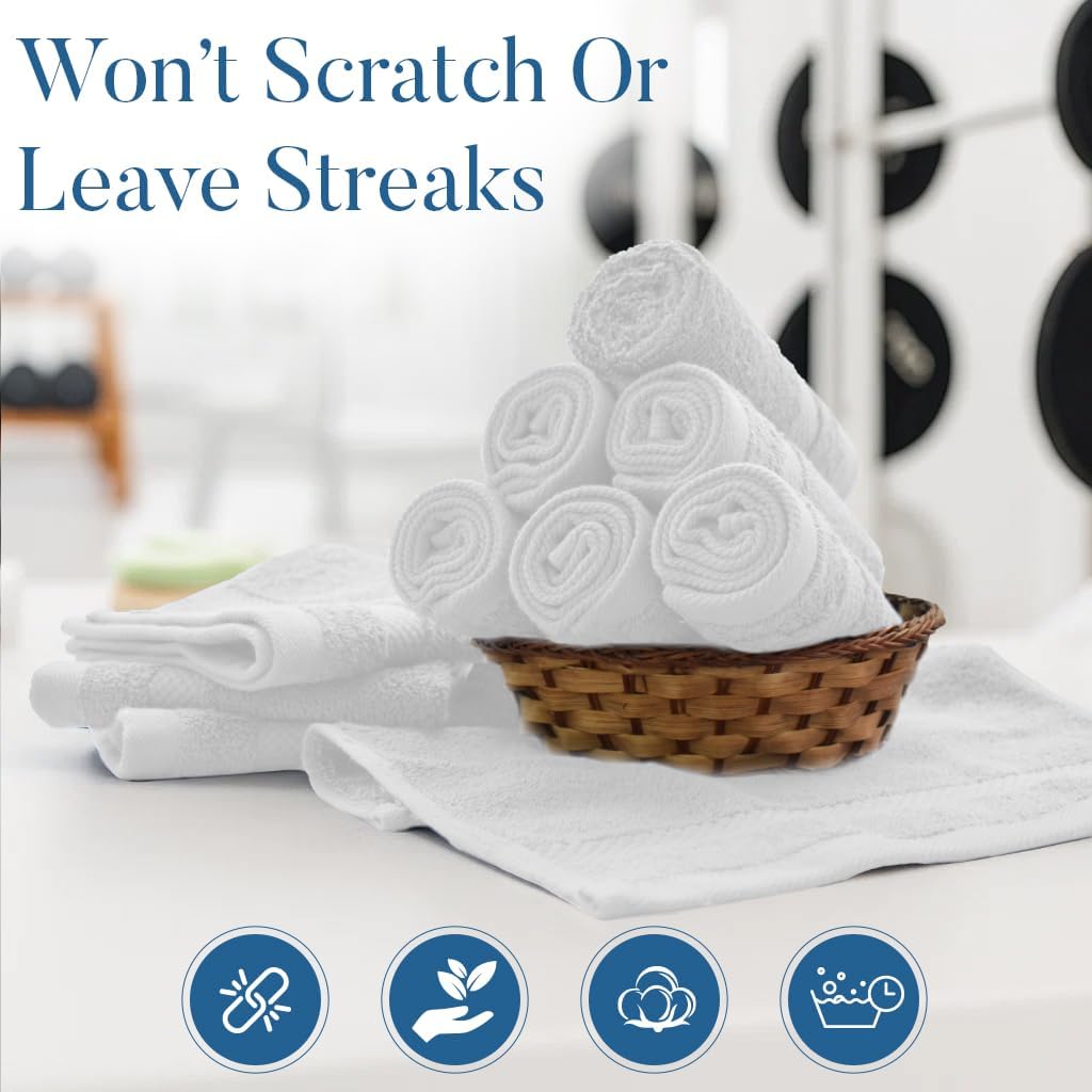 DAN RIVER 12-Pack Premium 100% Cotton White Face Towels – Reusable Face Towel Set, Soft & Absorbent Wash Cloths for Bathroom & Body – Hand and Face Towels, 550 GSM (12x12 in)