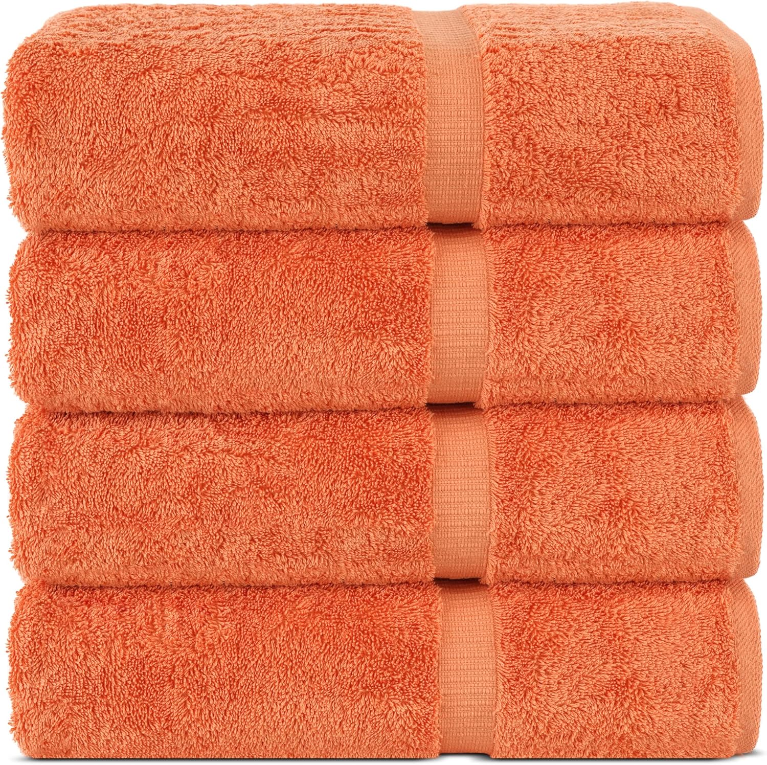 Chakir Turkish Linens | Hotel & Spa Quality 100% Cotton Premium Turkish Towels | Soft & Absorbent (4-Piece Bath Towels, Coral)