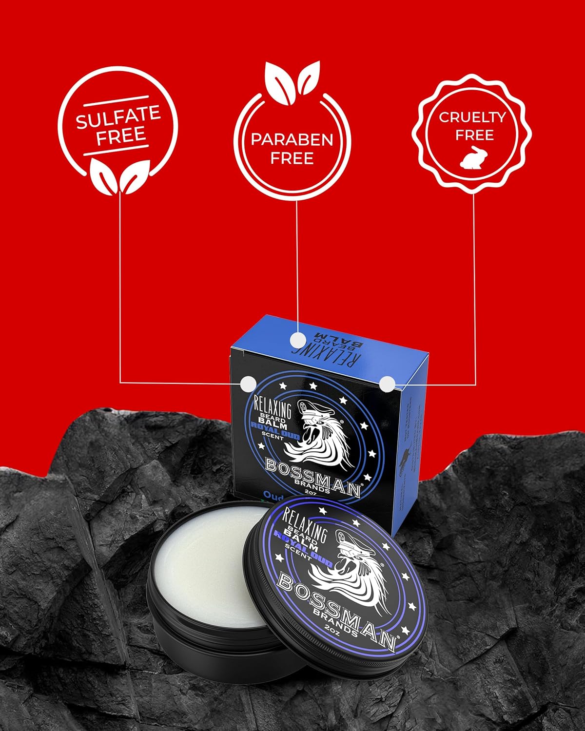 Bossman Relaxing Beard Balm for Men (Royal Oud Scent) – Tames, Relaxes, Thickens & Softens for Ultimate Beard Care – Made in USA