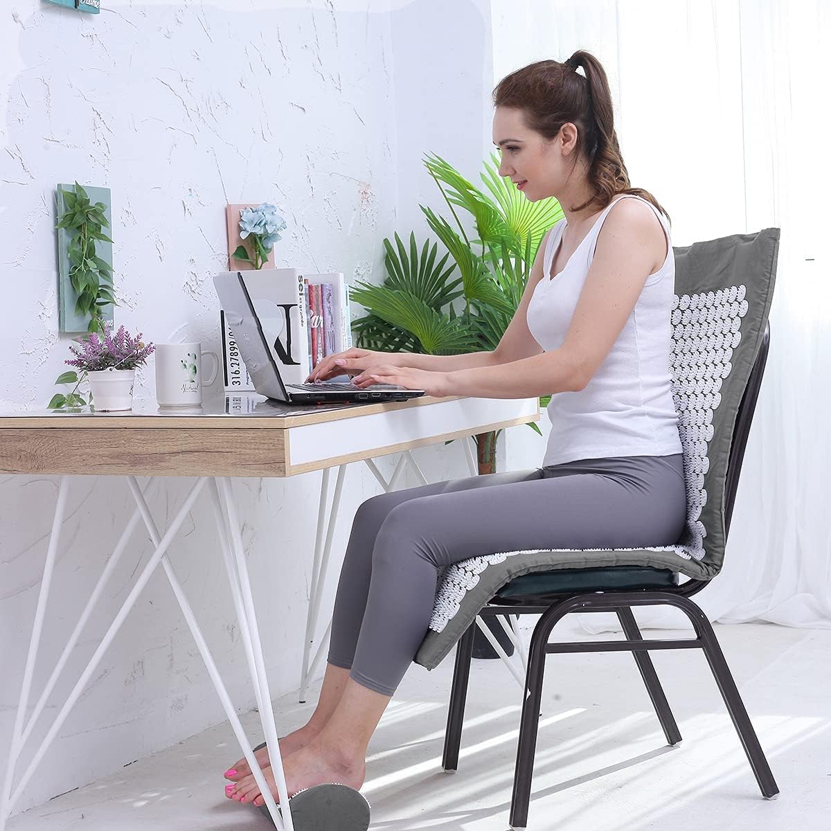 XiaoMaGe Acupressure Mat and Pillow Set with Bag - Extra Long Acupuncture Mat for Neck & Back Pain Relief- Naturally Relaxation Gift for Women - Stress Relief Massage Mat (Gray)