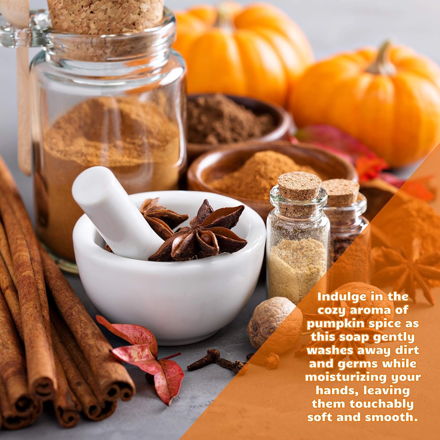- PUMPKIN SPICE SCENT - Welcome this season and take pleasure with this heavenly scented hand wash. Treat yourself to its warm and cozy pumpkin spice aroma that lightly permeates your world. Infused with a mild blend of cinnamon, nutmeg, cloves, and pumpkin scents, this soap invigorates your skin without overpowering your senses.