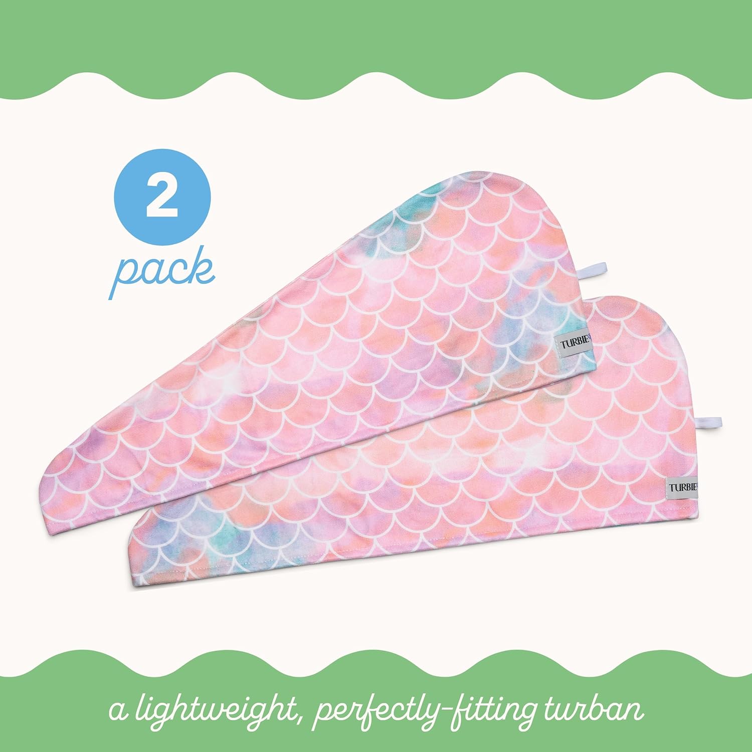 Turbie Twist 2-Pack Microfiber Hair Towel for Beauty, Travel, Gifting - Hair Wrap Turban for Straight, Wavy & Curly Hair - Premium Personal Care - Mermaid