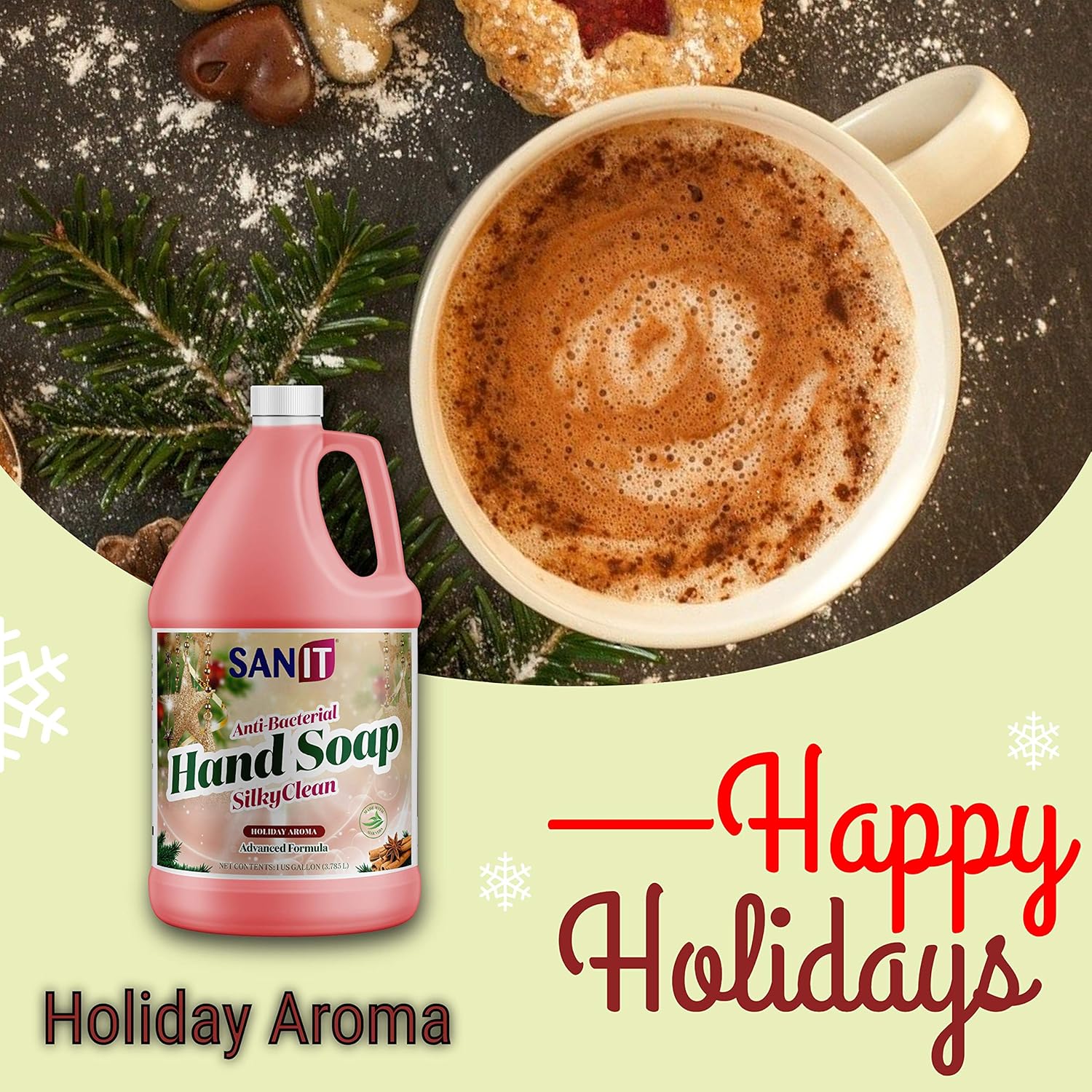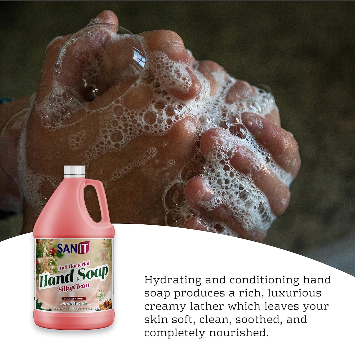 Sanit Silky Clean Antibacterial Liquid Gel Hand Soap Refill - Advanced Formula with Coconut Oil and Aloe Vera - All Natural Moisturizing Hand Wash - Made in USA, Holiday Aroma, 1 Gallon