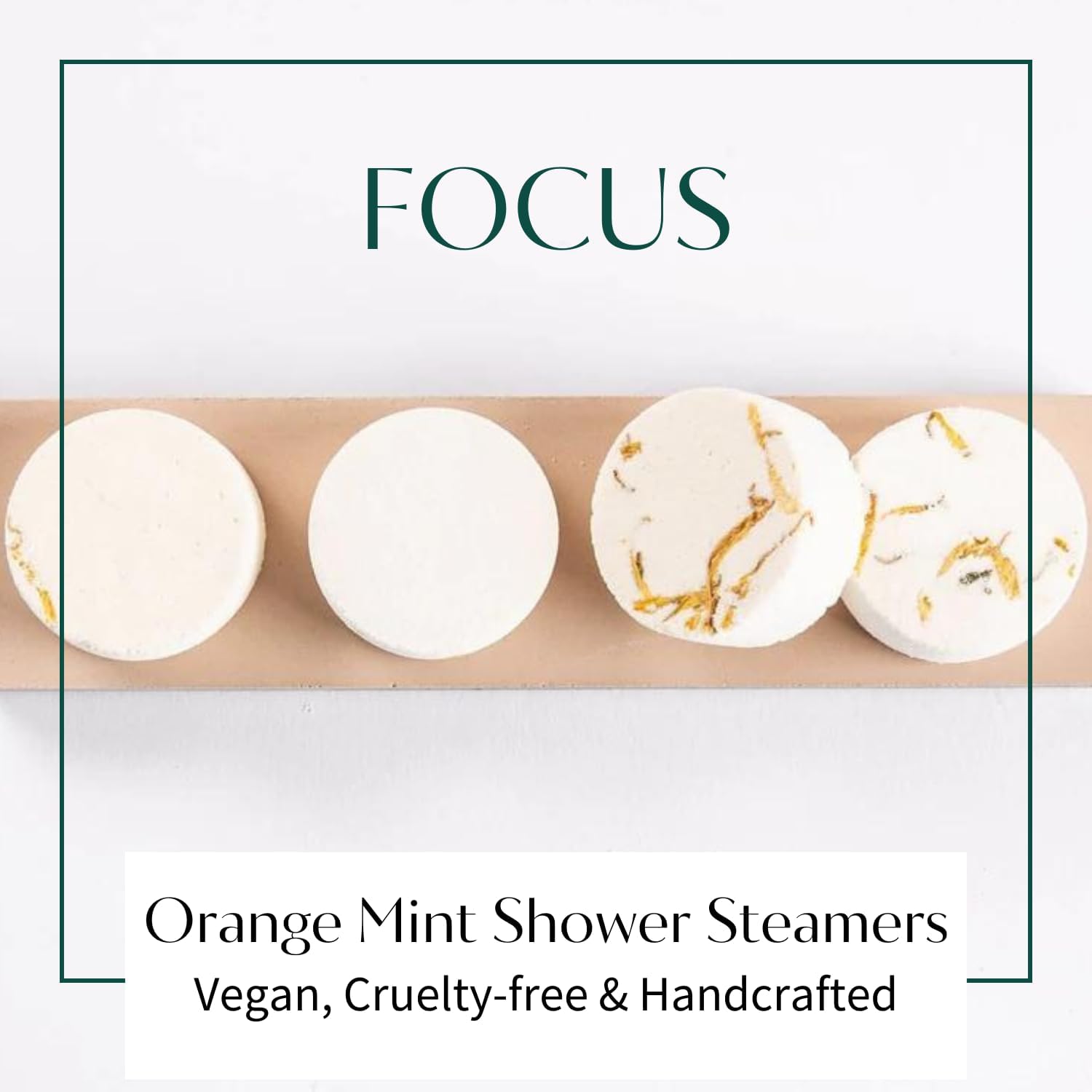 - RESTORE YOUR BODY & MIND: Invite focus into your bathroom with these refreshing aromatherapy shower steamers. Transform your shower into an aromatic spa experience. Enjoy the citrus, minty fresh scents of Orange and Peppermint essential oils. Our focus shower steamers are uplifting, perfect to give your mood a boost
