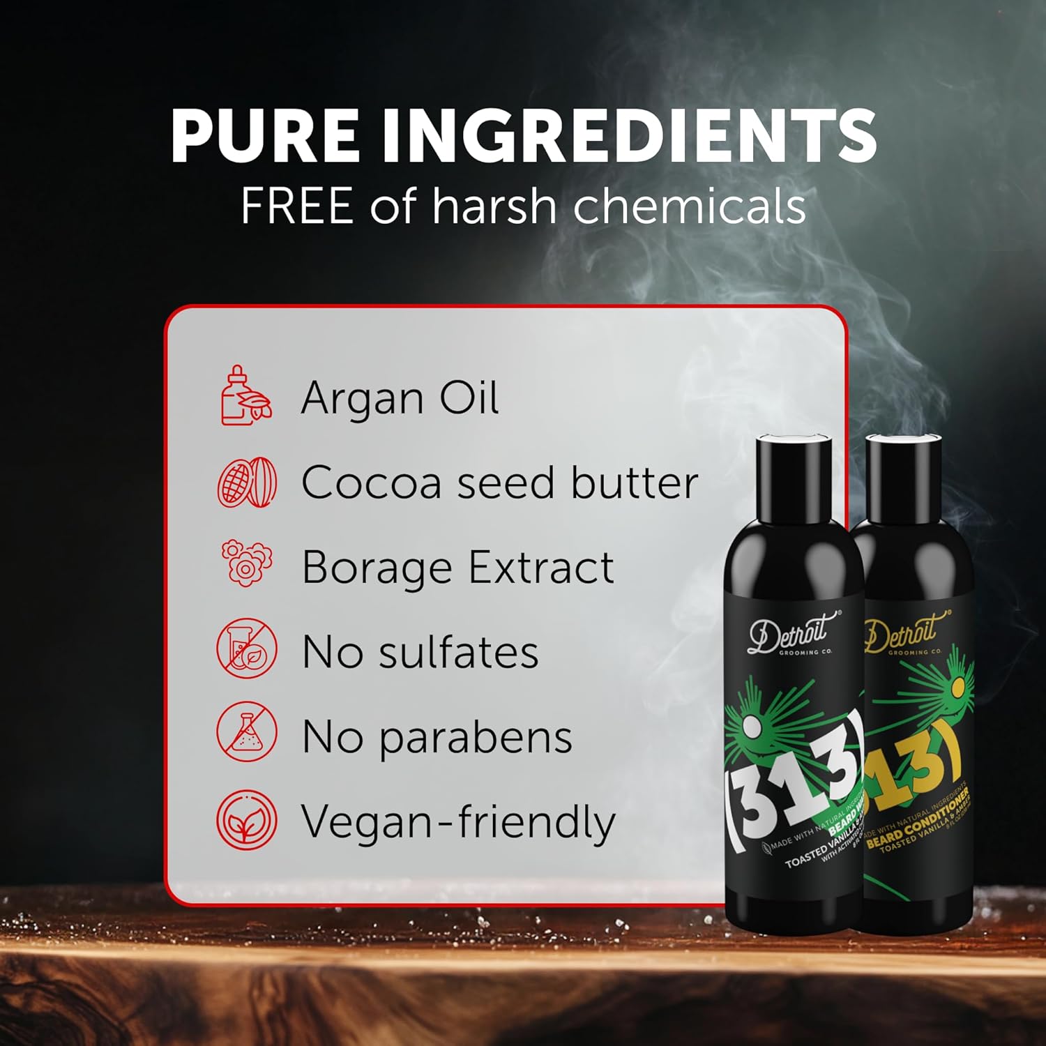 Detroit Grooming Co. Beard Wash and Beard Conditioner - Men's Kit - Softens, Strengthens, Moisturize, Infused w/Argan Oil, Apple Extract, & Aloe Vera - Toasted Vanilla Amber Scent - 313-8oz