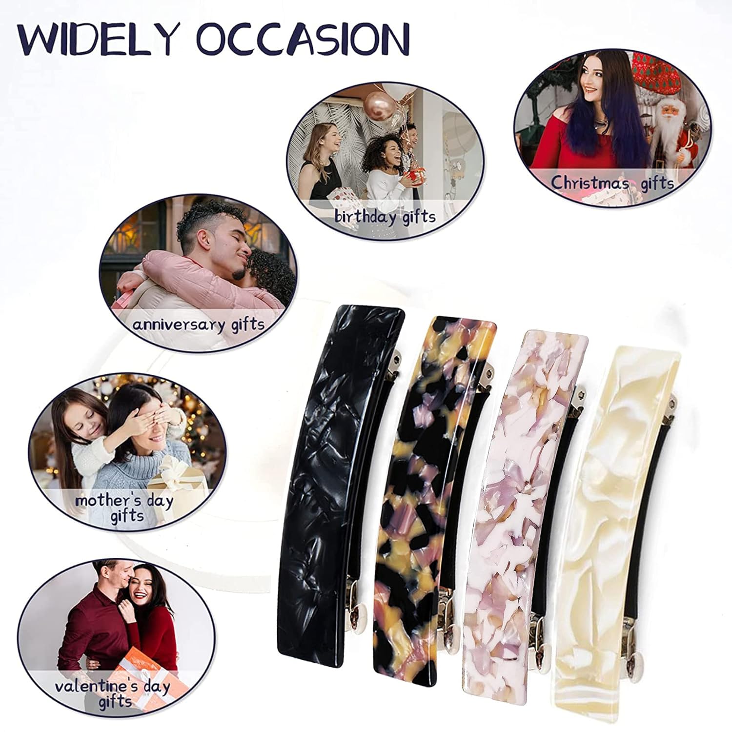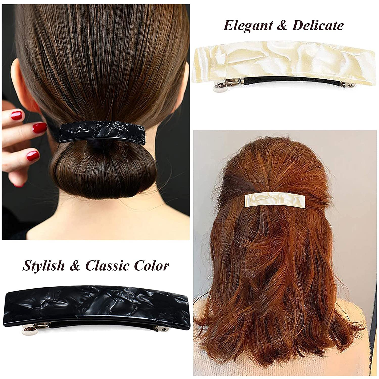 Hair Barrettes Tortoise Shell French Design Celluloid Hair Clip Medium Rectangular Automatic Hair Pins for Women Girl Lady 4 Pack