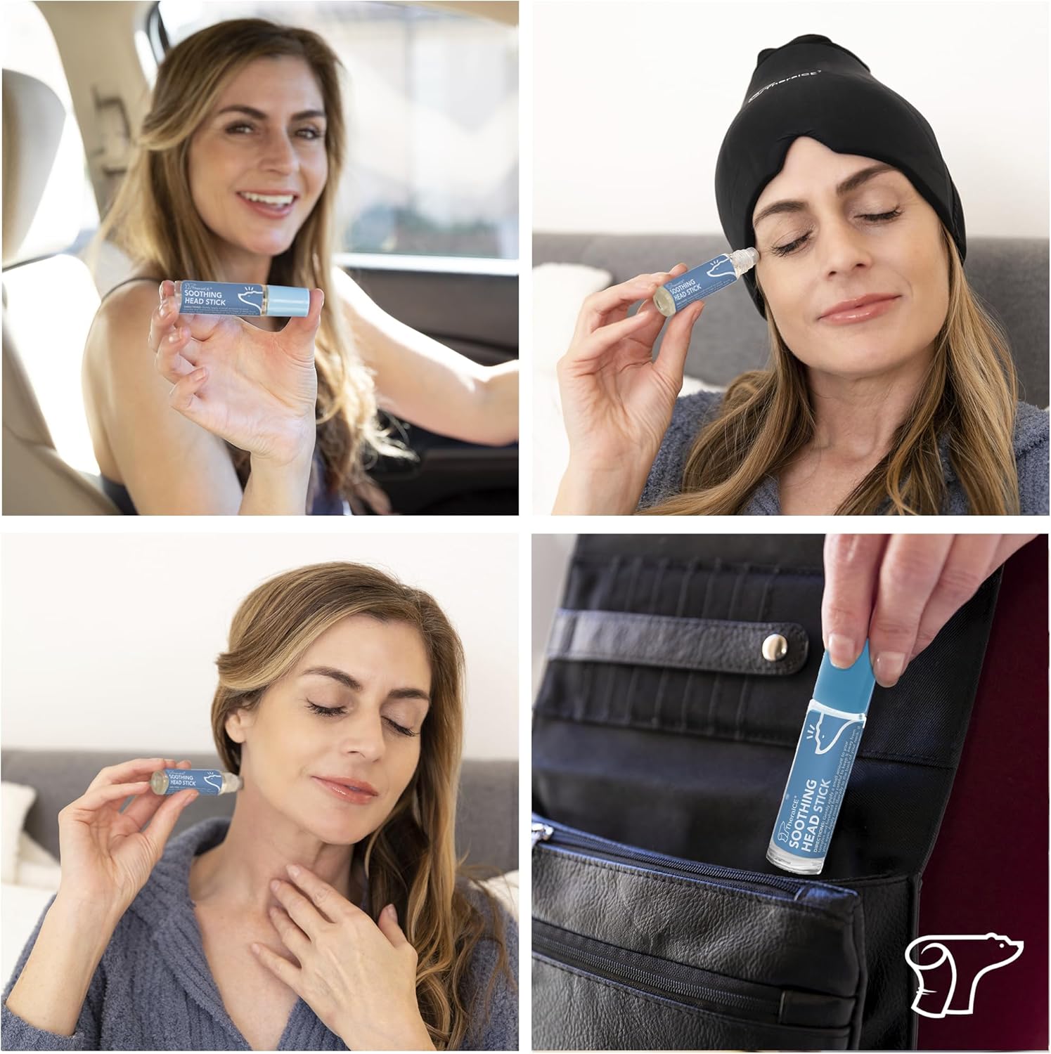 TheraICE Soothing Head Stick 10 ml (.33-Oz) Essential Oil Roll on Aromatherapy: Peppermint, Spearmint, Lavender, Chamomile, Rosemary, Eucalyptus. Metal Roller. USA Made