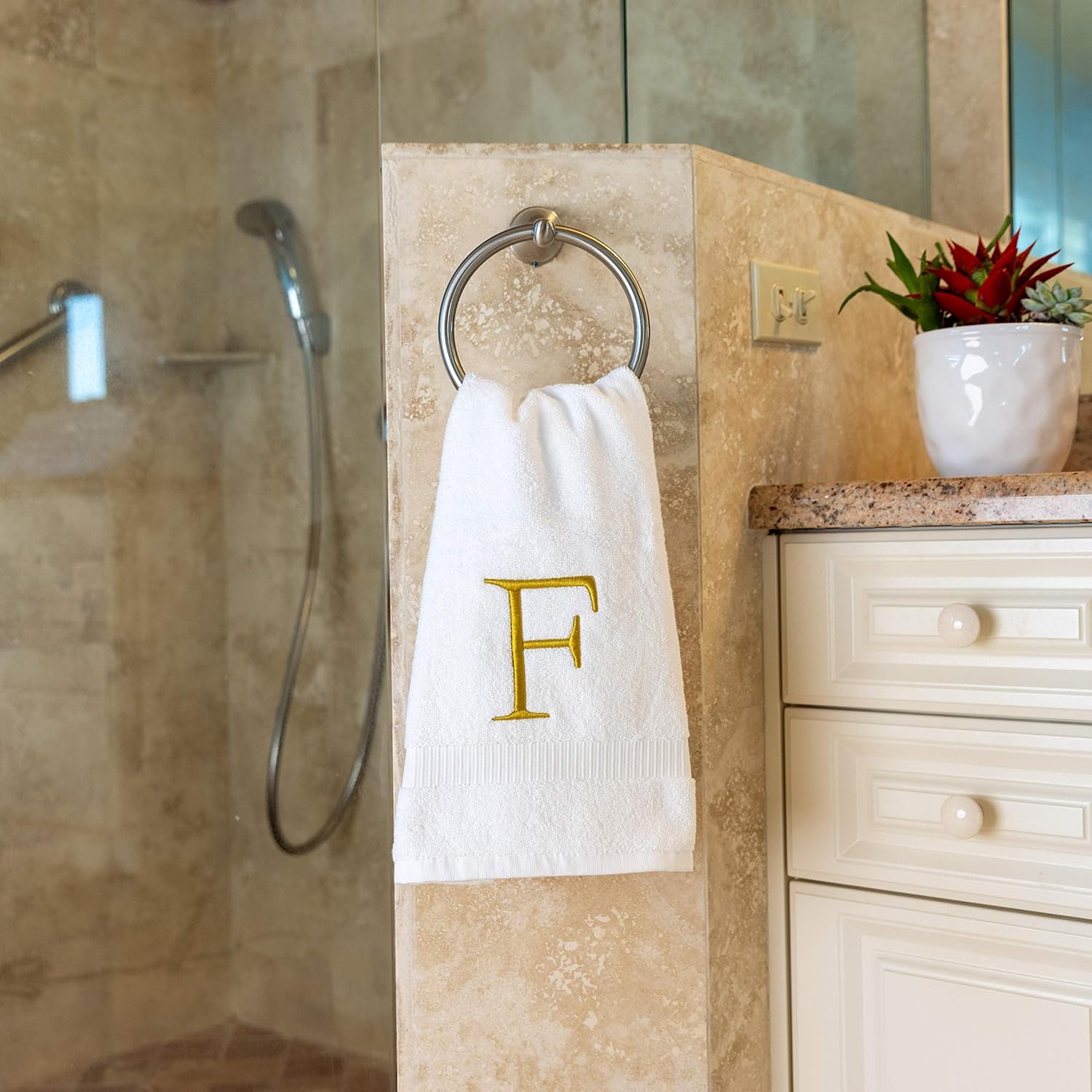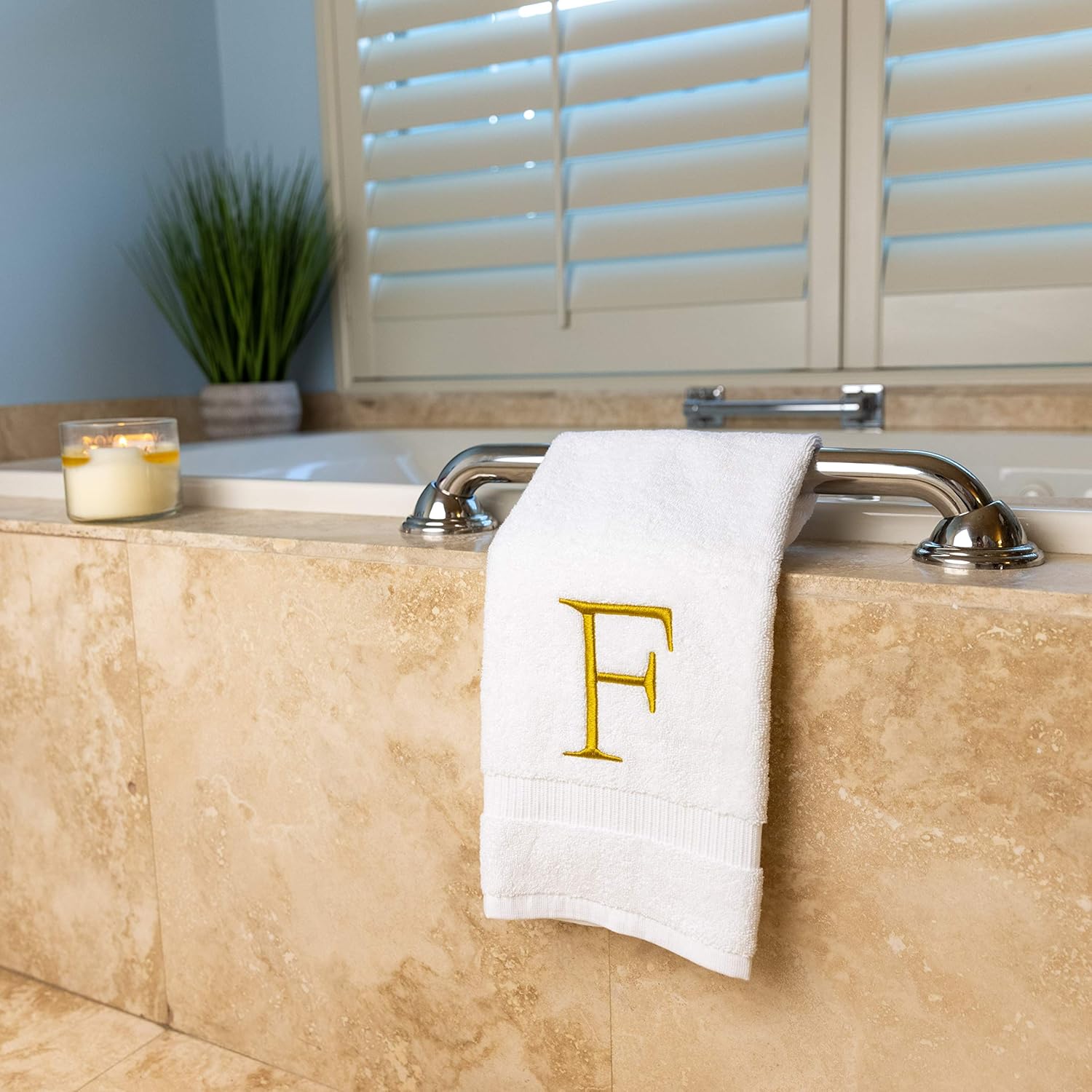 Monogrammed Hand Towels for Bathroom - Luxury Hotel Quality Personalized Initial Decorative Embroidered Bath Towel for Powder Room, Spa - GOTS Organic Certified - Set of 2 Gold Letter F