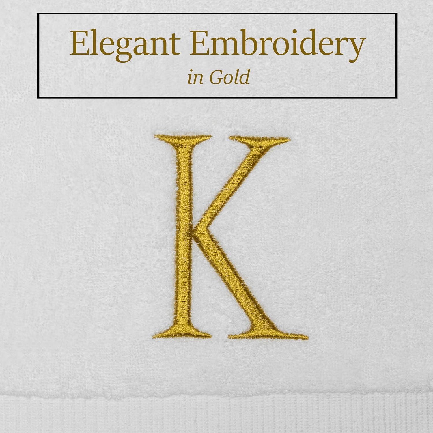 Monogrammed Hand Towels for Bathroom - Luxury Hotel Quality Personalized Initial Decorative Embroidered Bath Towel for Powder Room, Spa - GOTS Organic Certified - Set of 2 Gold Letter K