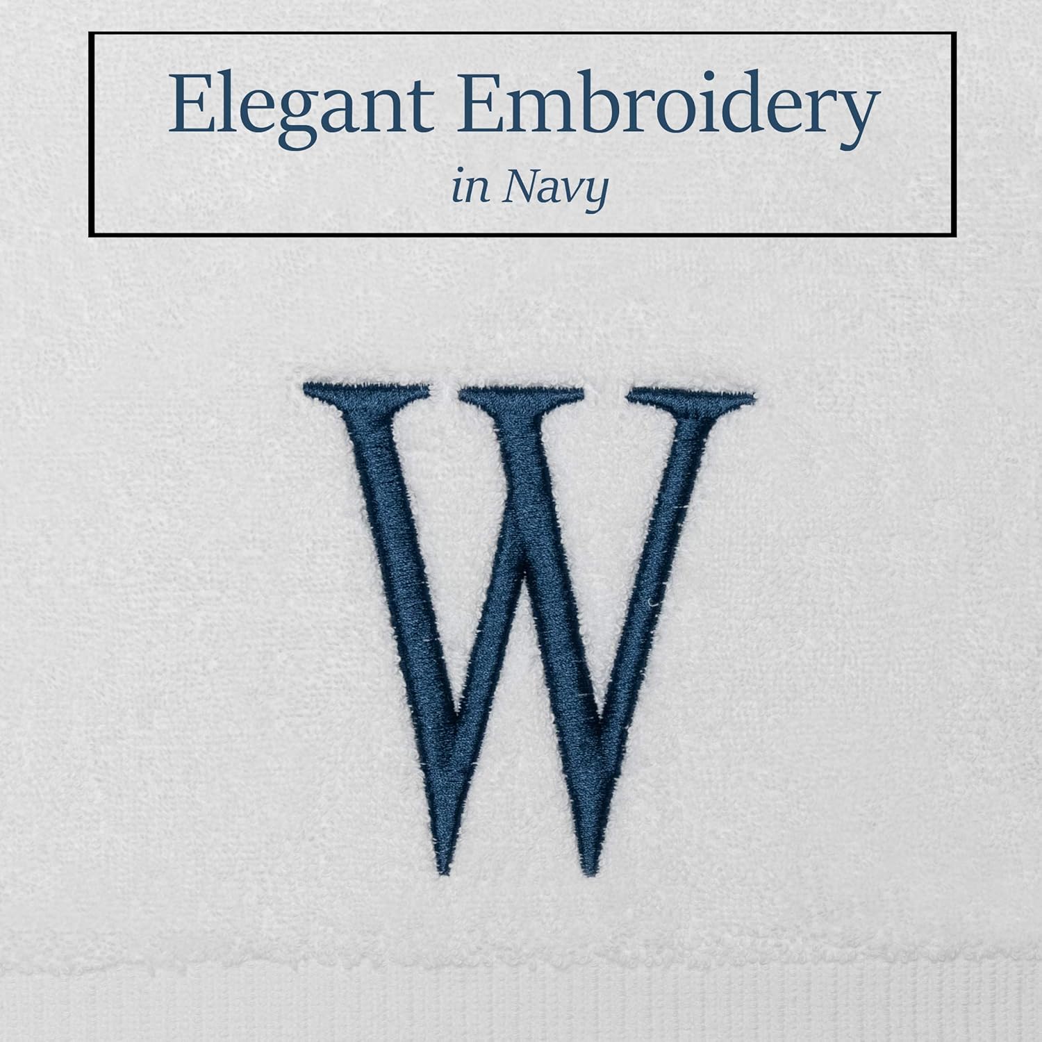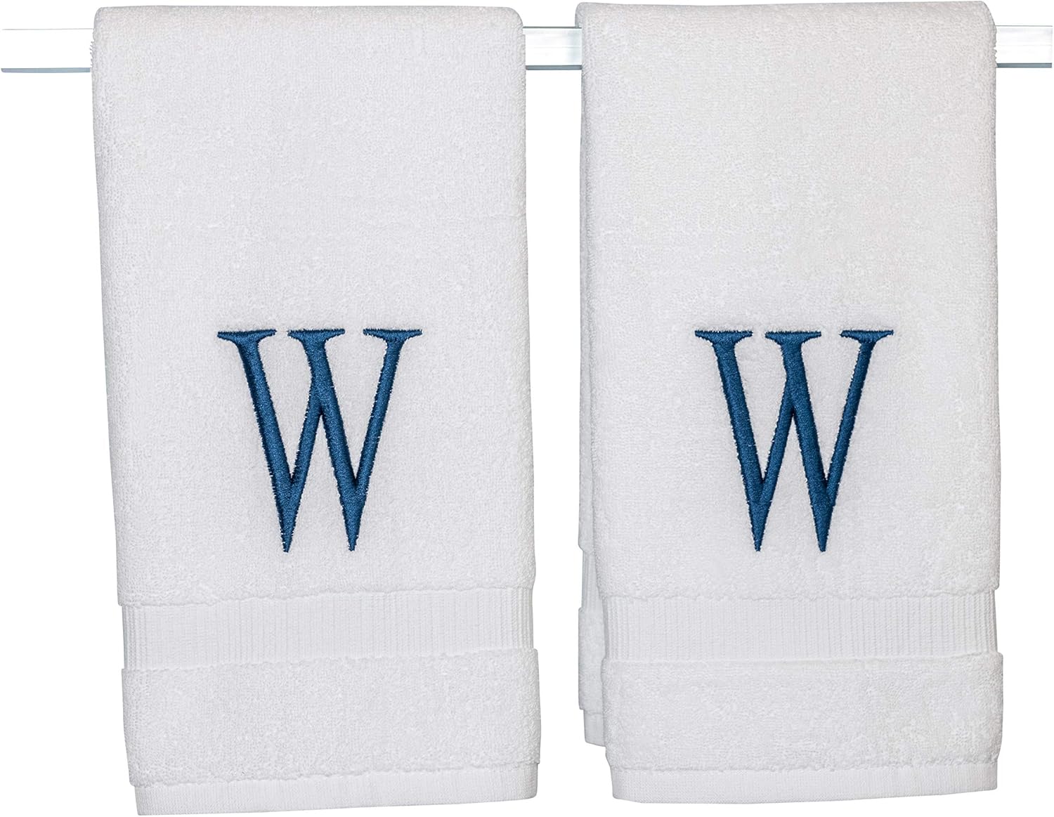Monogrammed Hand Towels for Bathroom - Luxury Hotel Quality Personalized Initial Decorative Embroidered Bath Towel for Powder Room, Spa - GOTS Organic Certified - Set of 2 Navy Letter W