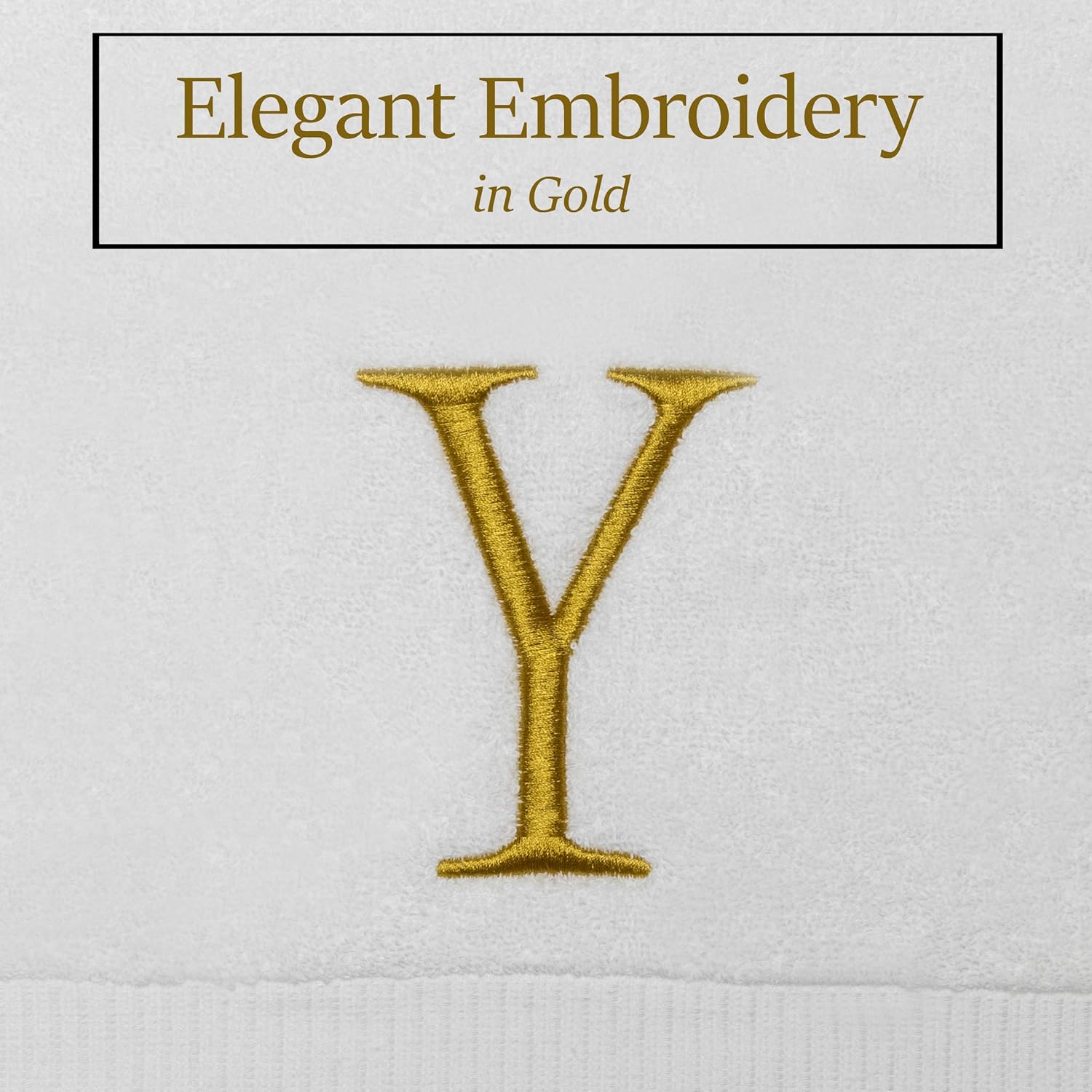 Monogrammed Hand Towels for Bathroom - Luxury Hotel Quality Personalized Initial Decorative Embroidered Bath Towel for Powder Room, Spa - GOTS Organic Certified - Set of 2 Gold Letter Y