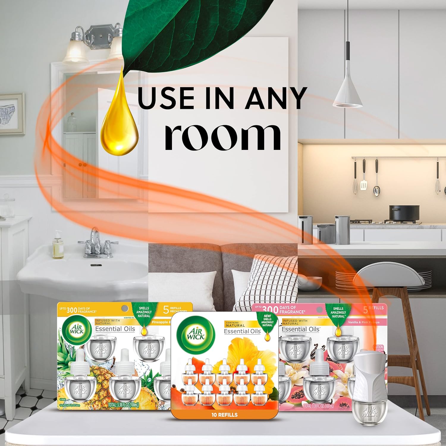- WARMER: Easy adjust warmer with 5X fragrance settings. Refills are compatible with all versions of Air Wick plug in warmers