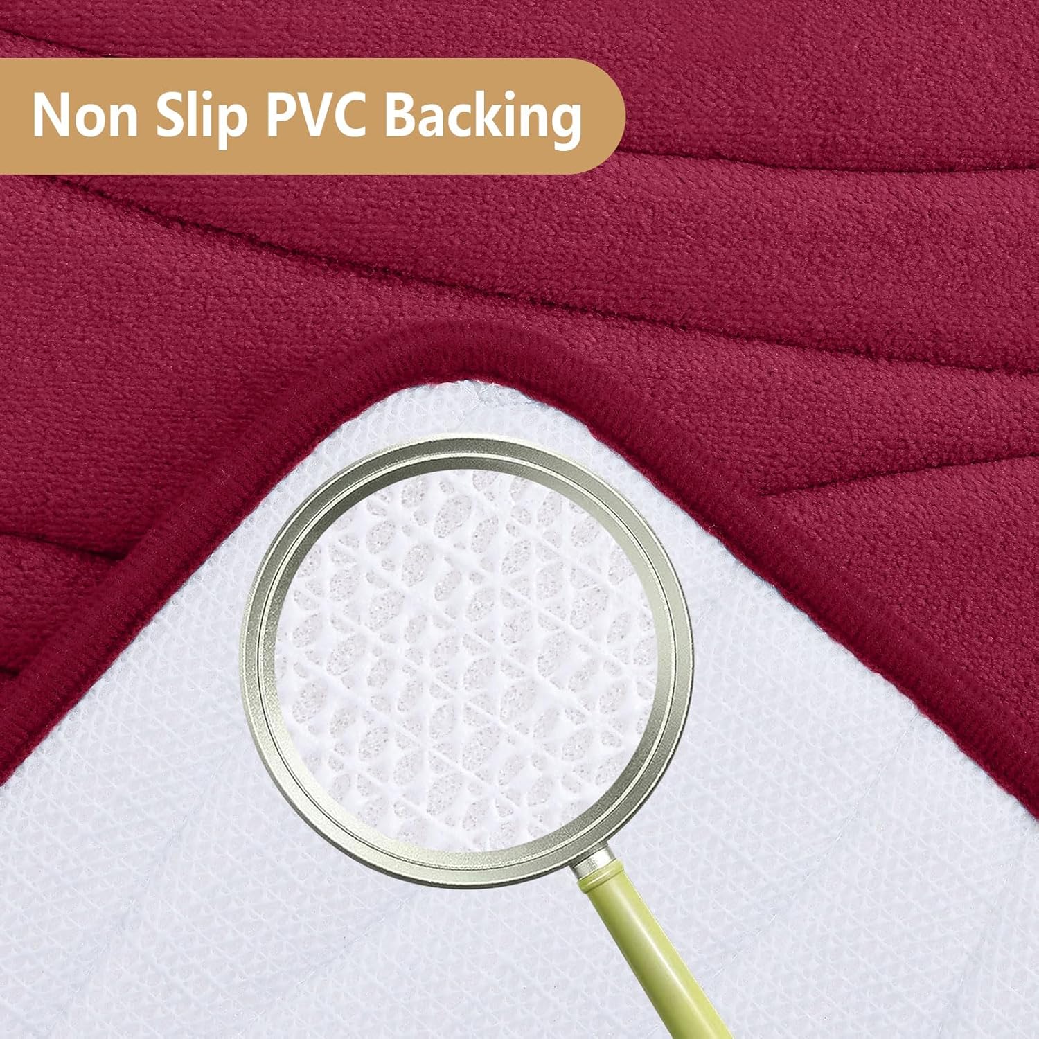 - Non-Slip Backing: Our memory foam bath rug features a robust and firm PVC backing that stops shifting and skidding and ensures long-lasting durability. WARNING: Place mat on CLEAN DRY SMOOTH FLOOR only. Water under bath mats can cause it to slip. Keep bottom of mat dry. Before using bath carpet, test with foot to ensure it doesn't move