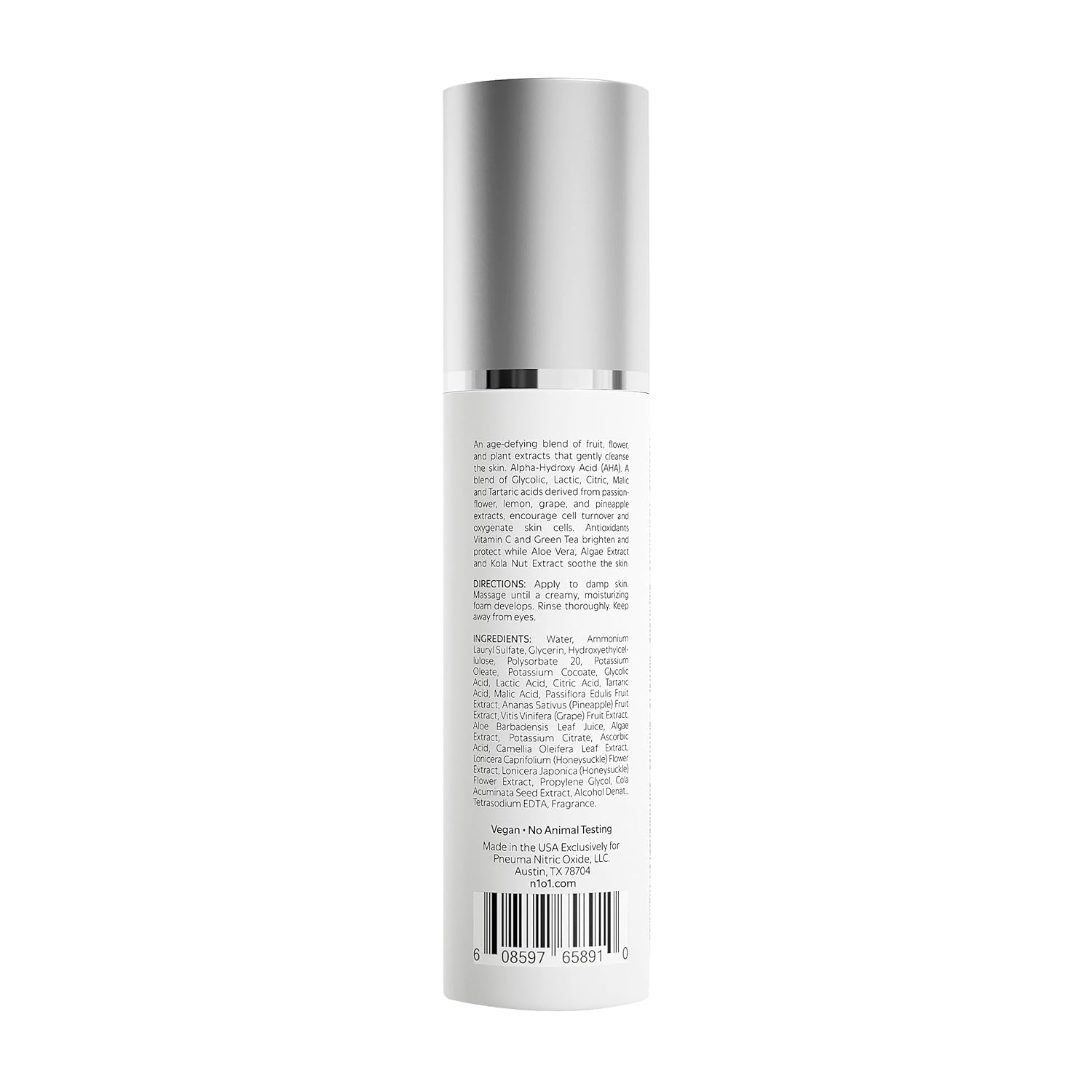 - INGREDIENTS: The Pneuma age-defiance gel cleanser contains Antioxidants, AHA, Glycolic, Aloe, Green Tea, Fruit extracts, Natural Botanicals and is gentle which is suitable for all skin types.