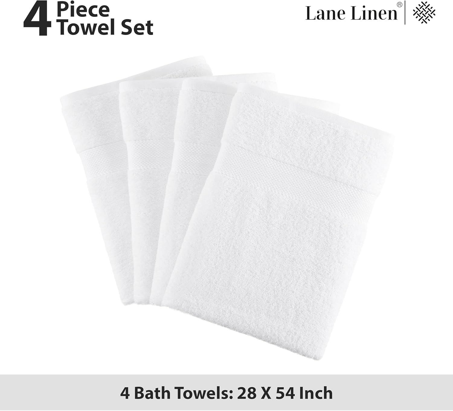 - *Premium Quality*: The LANE LINEN 100% cotton 4-piece bath towel set features ultra-soft, plush bath towels made from high-quality cotton, providing superior absorbency and comfort for your skin. Perfect for any bathroom.
