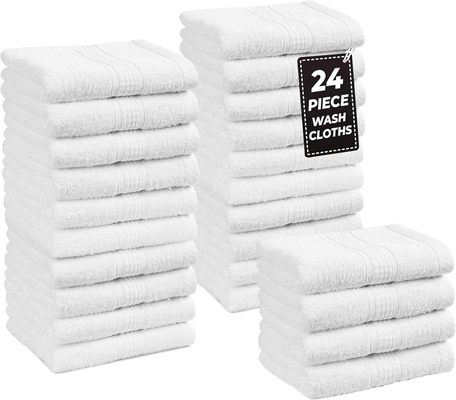 LANE LINEN 100% Cotton Washcloths 24 Pack - Spa & Salon Quality Face Towels - Ring Spun, Soft & Absorbent Wash Cloth Rags for Body, Beauty, Home, Gym - Fingertip Towels - 13"x13", White Washcloths
