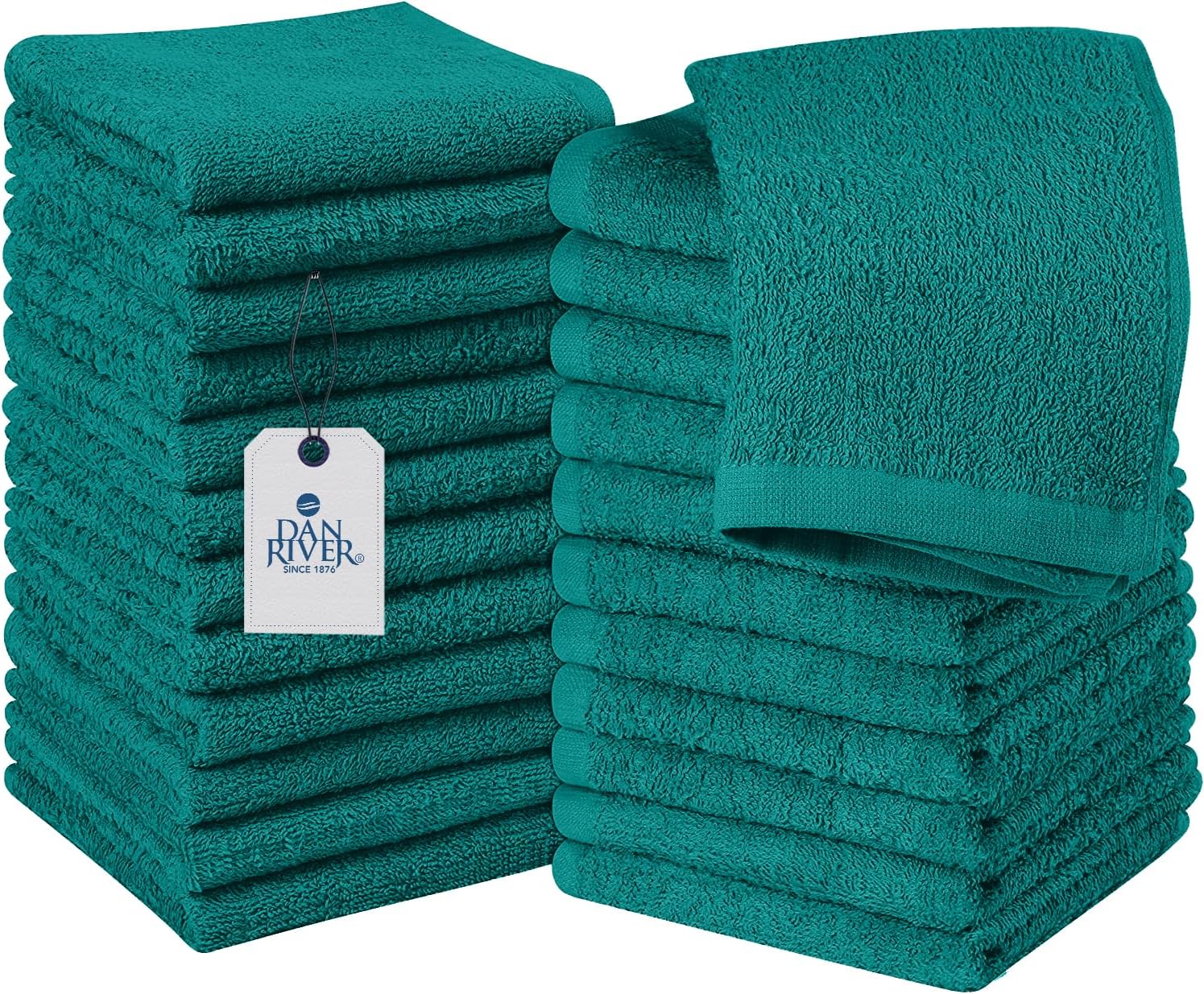 DAN RIVER 100% Cotton Wash Cloths 24 Pack [12x12] Soft & Absorbent Soft face Towels, Gym, Hotels & Spa Perfect for Everyday Use Fingertip Towels, Teal
