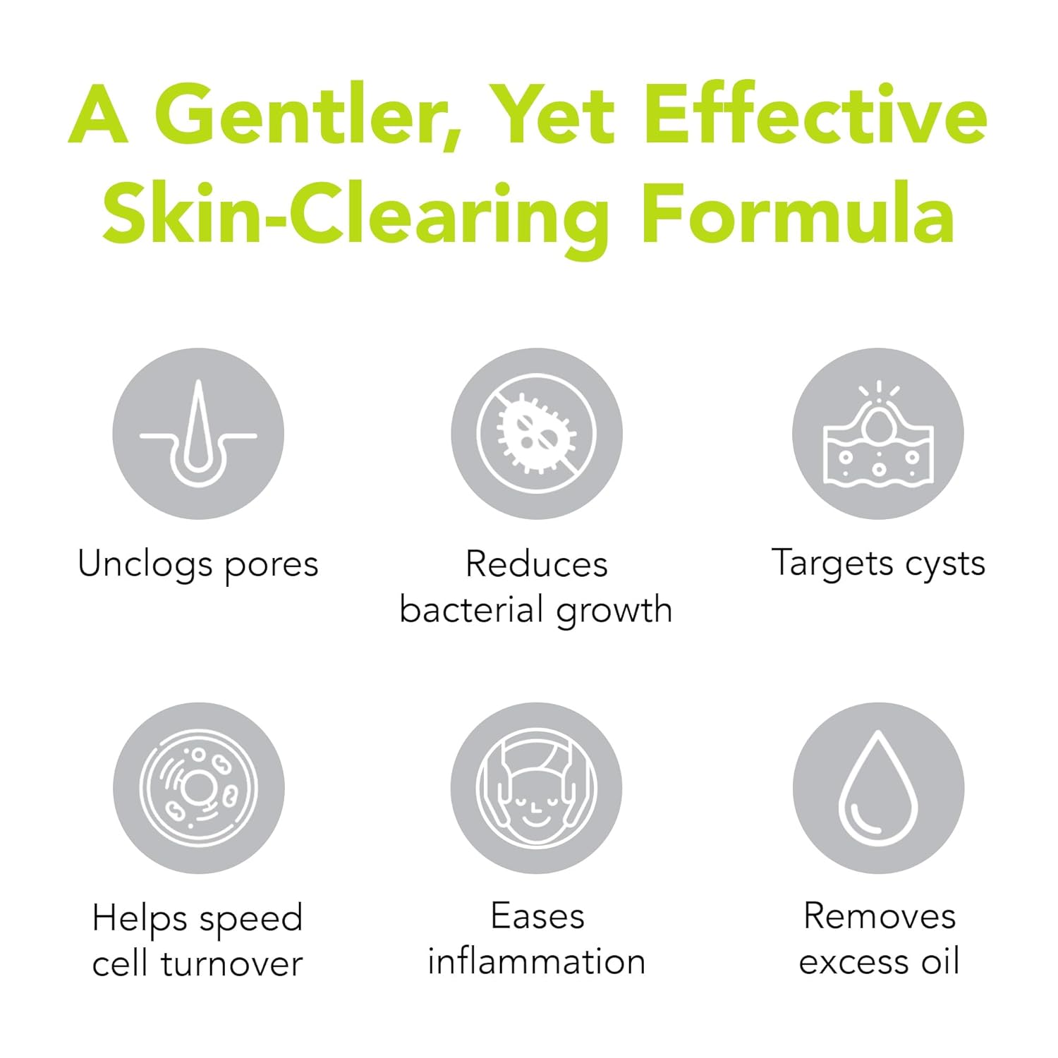 - One Proven Ingredient: We harnessed the healing powers of benzoyl peroxide to help clear and prevent blackheads, whiteheads, pimples and below-the-skin cysts, while easing redness. It also helps to increase cell turnover by removing the mixture of excess oil, dead skin and debris that clogs pores.
