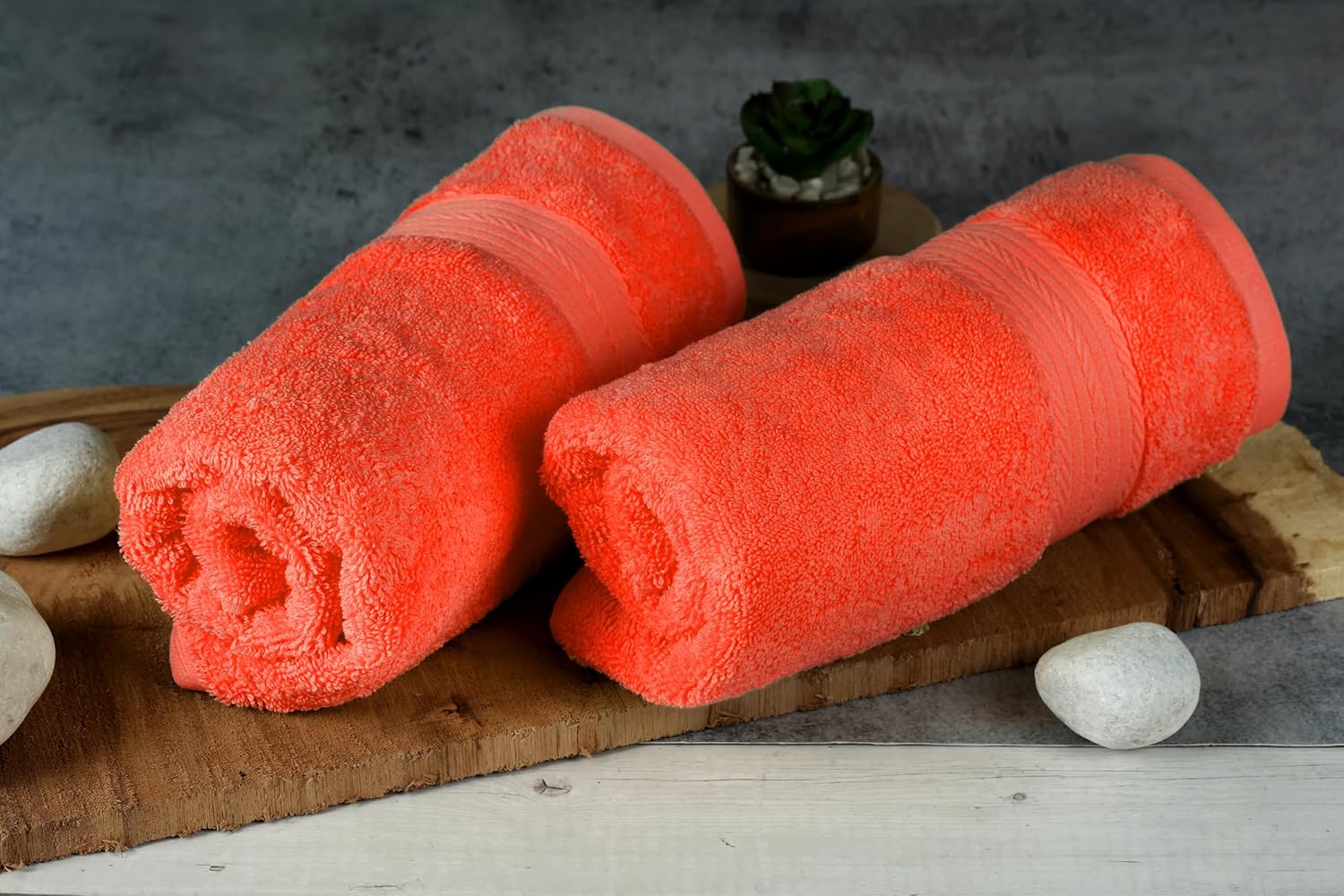 Ample Decor Bathroom Set of 2 Hand Towel 18 X 28 Inch 600 GSM 100% Cotton, Premium Soft Absorbent - Orange
