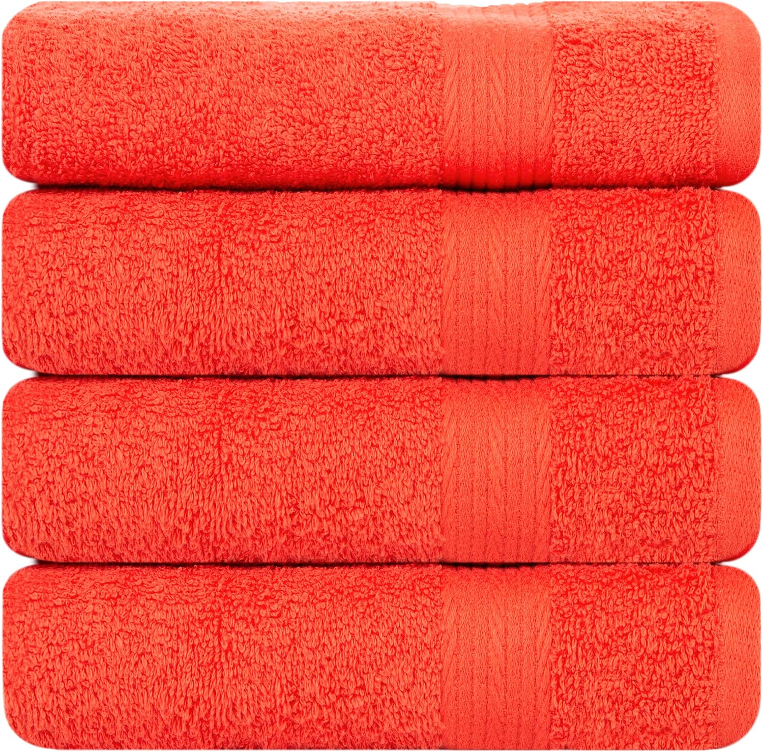 Ample Decor Hand Towels for Bathroom 18 X 28 Inch 600 GSM 100% Cotton, Soft Absorbent - 4 Pcs Orange