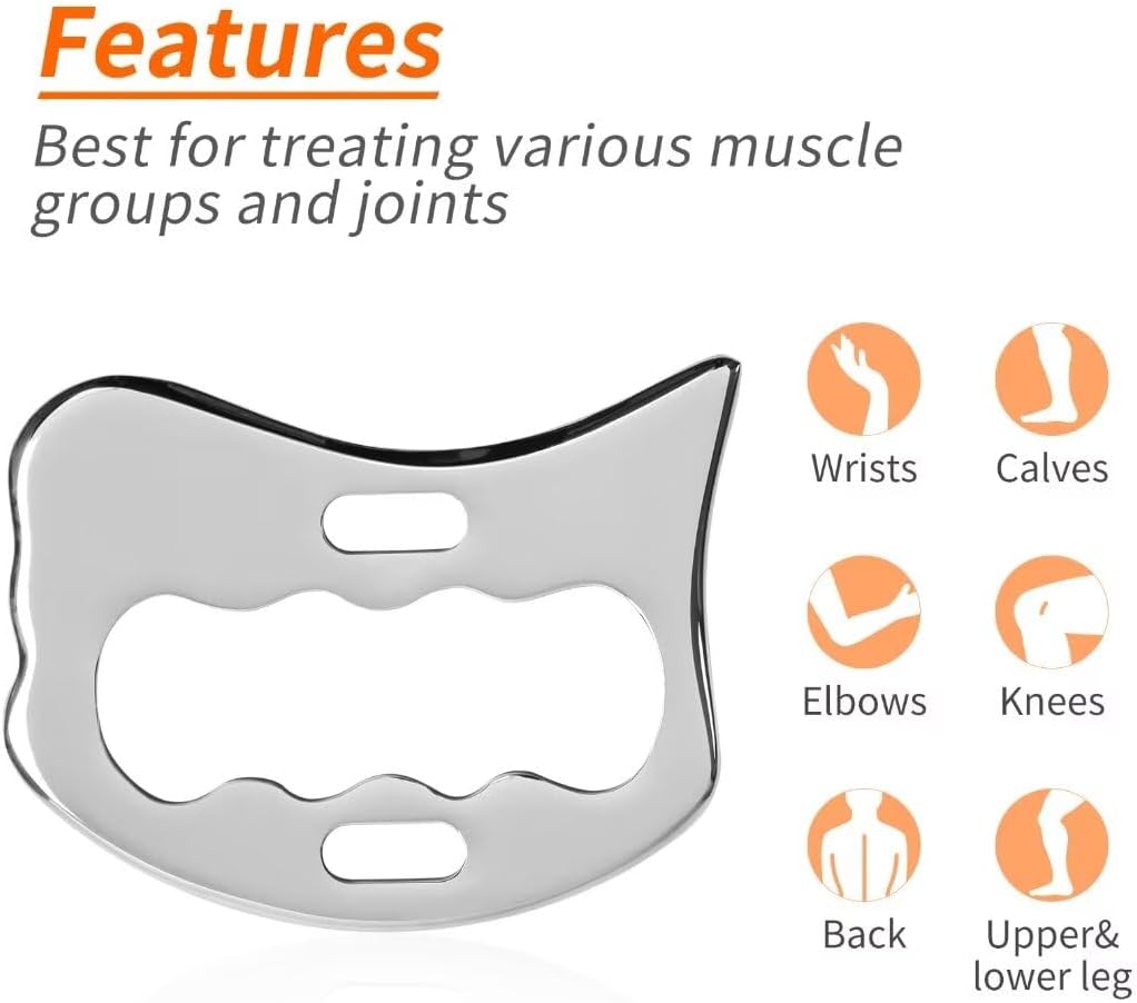 - RELIEVE SORENESS: This stainless steel gua sha tool effectively relieves muscle soreness, knots, and tightness through gentle scraping and massaging of soft tissues.