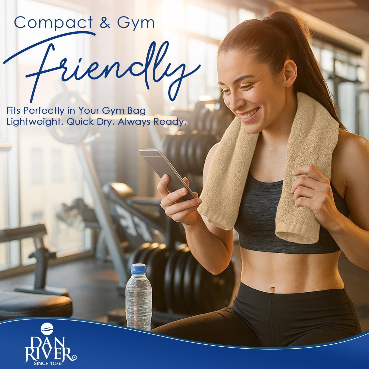 DAN RIVER 6-Pack Premium Hand Towels (16x28 Inches) - 100% Cotton, Ultra Soft, Lightweight, Highly Absorbent Towels for Bathroom, Spa, Gym, Salon, Hotel, and Travel - 550 GSM โ Tan