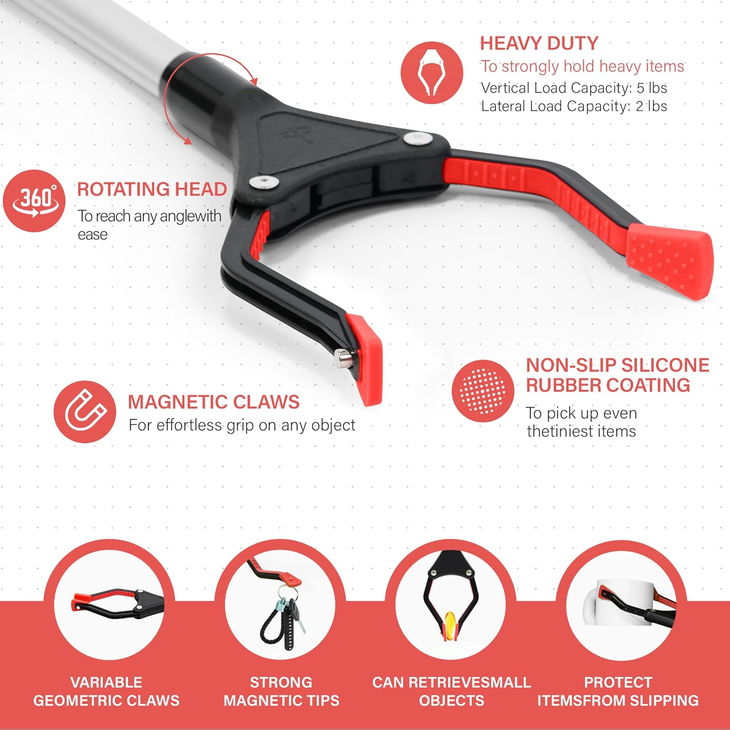 - VERSATILE REACHER GRABBER: With a rotating 360 degree grabber head to reach any direction, allows you easy to grip of large, small, and odd shaped items from the ground, the bottom of the bed, and behind the sofa, such as wine glass, letter, coins, papers, keys, remote control, trash or litter, leaves, etc. Grabber tool for elderly.Use this grabber tool to make your work easier. reacher grabber tool for elderly.