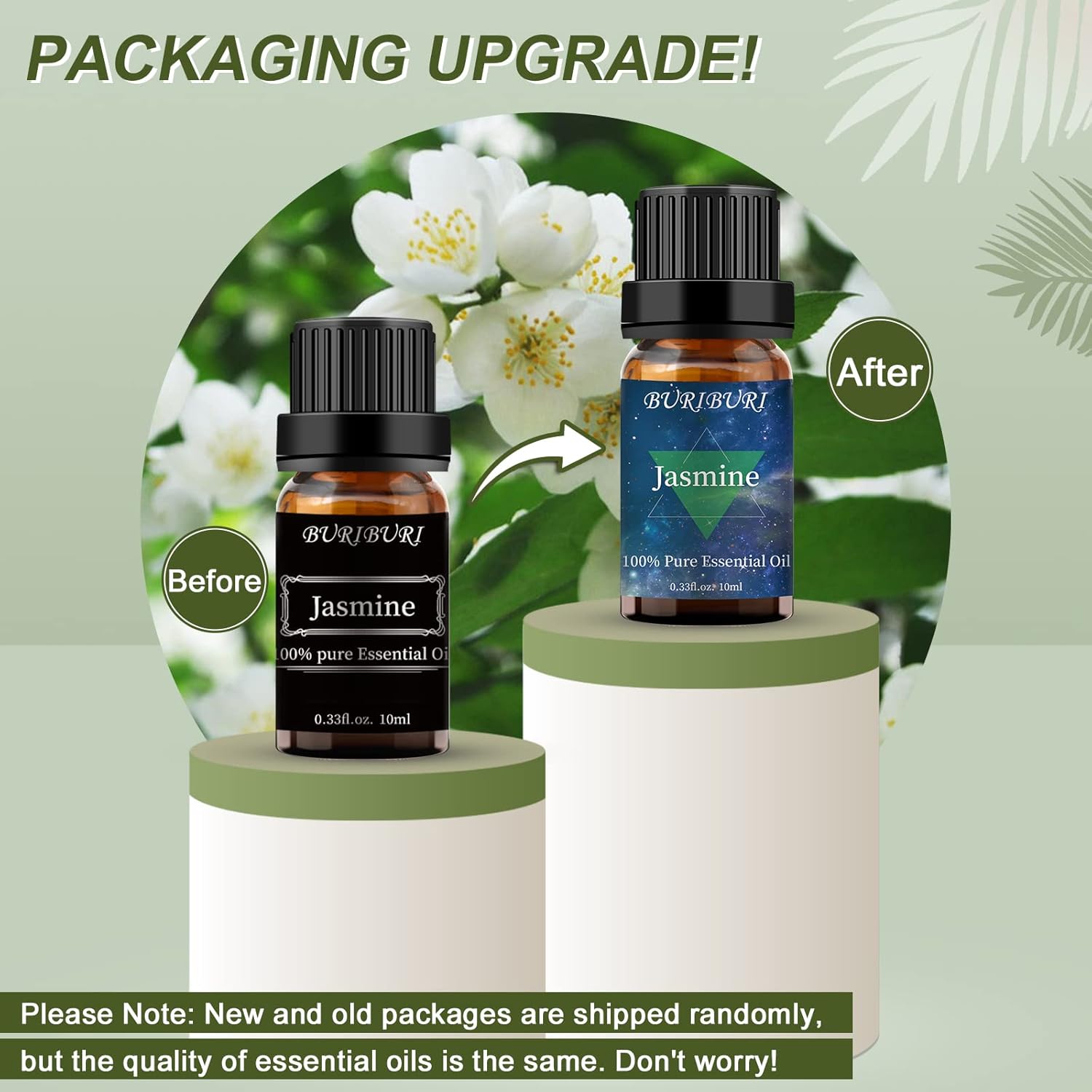 - Packing Includes: 10ml Gardenia Essential Oil x1, 10ml Jasmine Essential Oil x1. With no adulterants or dilution, 100% pure quality. BURIBURI scented oil is bottled in a durable amber glass bottle.