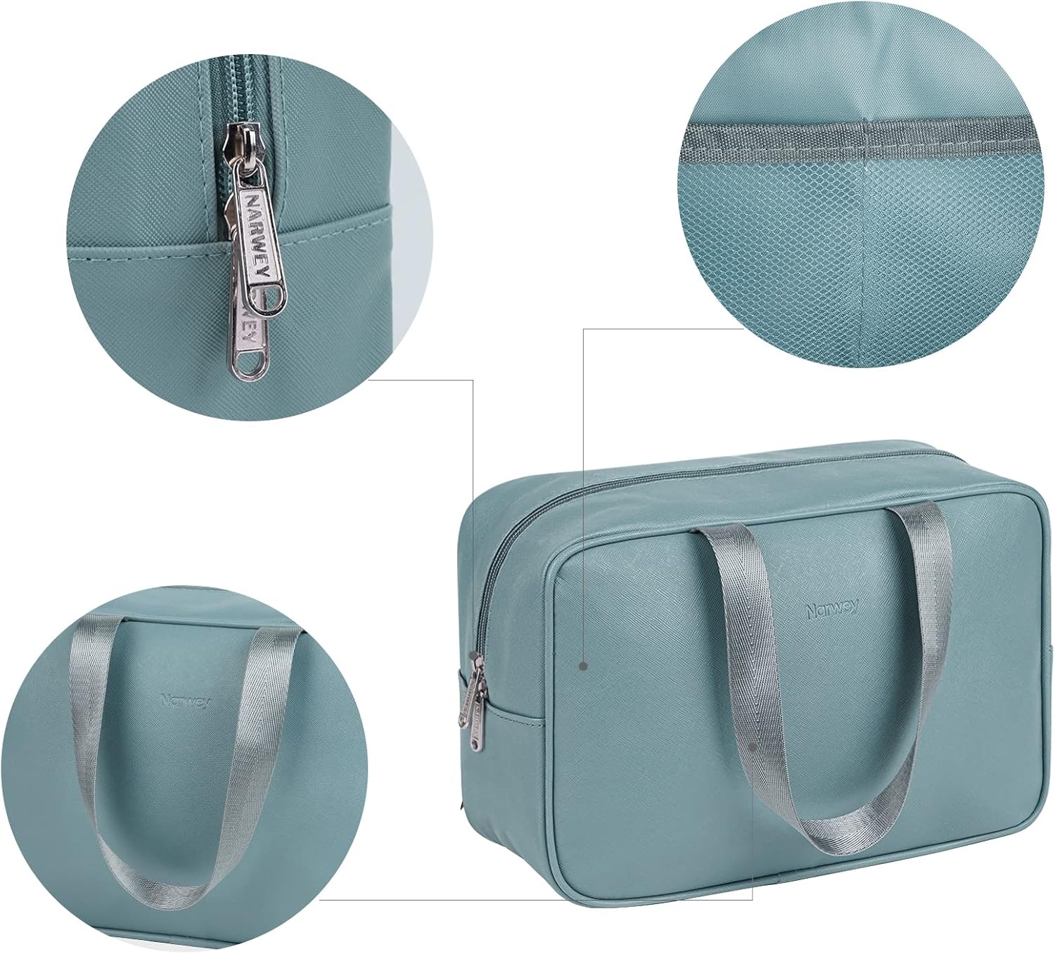 PU Leather Large Travel Toiletry Bag Women Toiletries Bag Skincare Bag Makeup Bag Organizer Make up bag Cosmetic Bag Medicine Bag for Girls (Large, Greyish Blue)