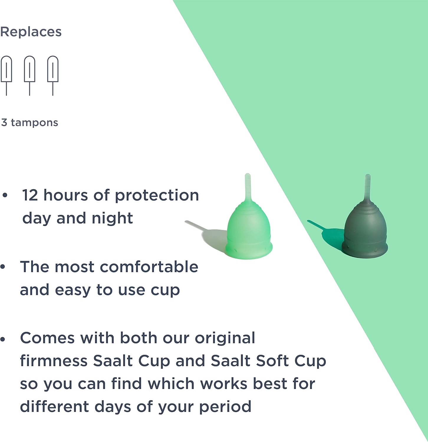 - Reliable - Wear your Saalt Soft Cup for to 12 hours at a time, even while you're sleeping, or running a marathon, or flying to London. No matching your flow to different absorbencies or emergency tampon runs. This little menstrual cup collects as much as 3-4 tampons and never dries you out so you can have a worry free period.