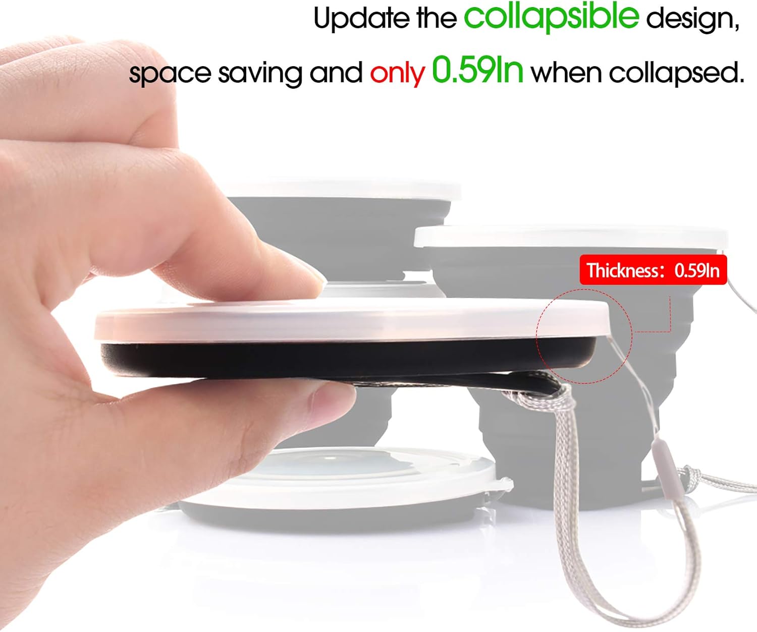 - Ultrathin Folding Design and Portable: Update the collapsible design, space saving and only 0.59In when collapsed, fits well in your pocket, purse, backpack, suitcase and takes up no space, ideal for outdoor hiking, camping, travel, and sport events