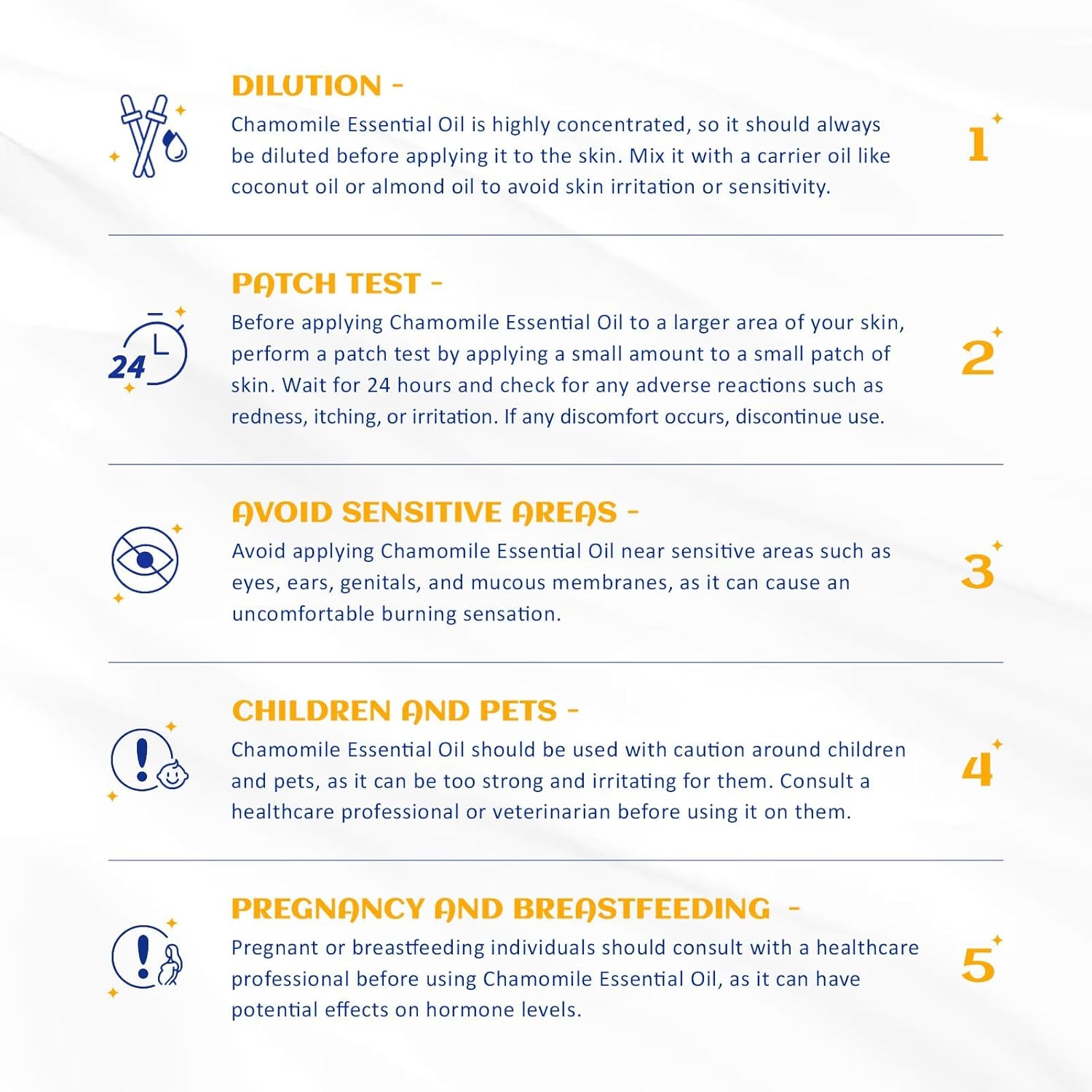 - Multi Purpose: Chamomile essential oil can be used not only as a natural fragrance to create a cozy home environment, but also as an ingredient in skincare products to enhance skin radiance and in massages to help relax the mind and body