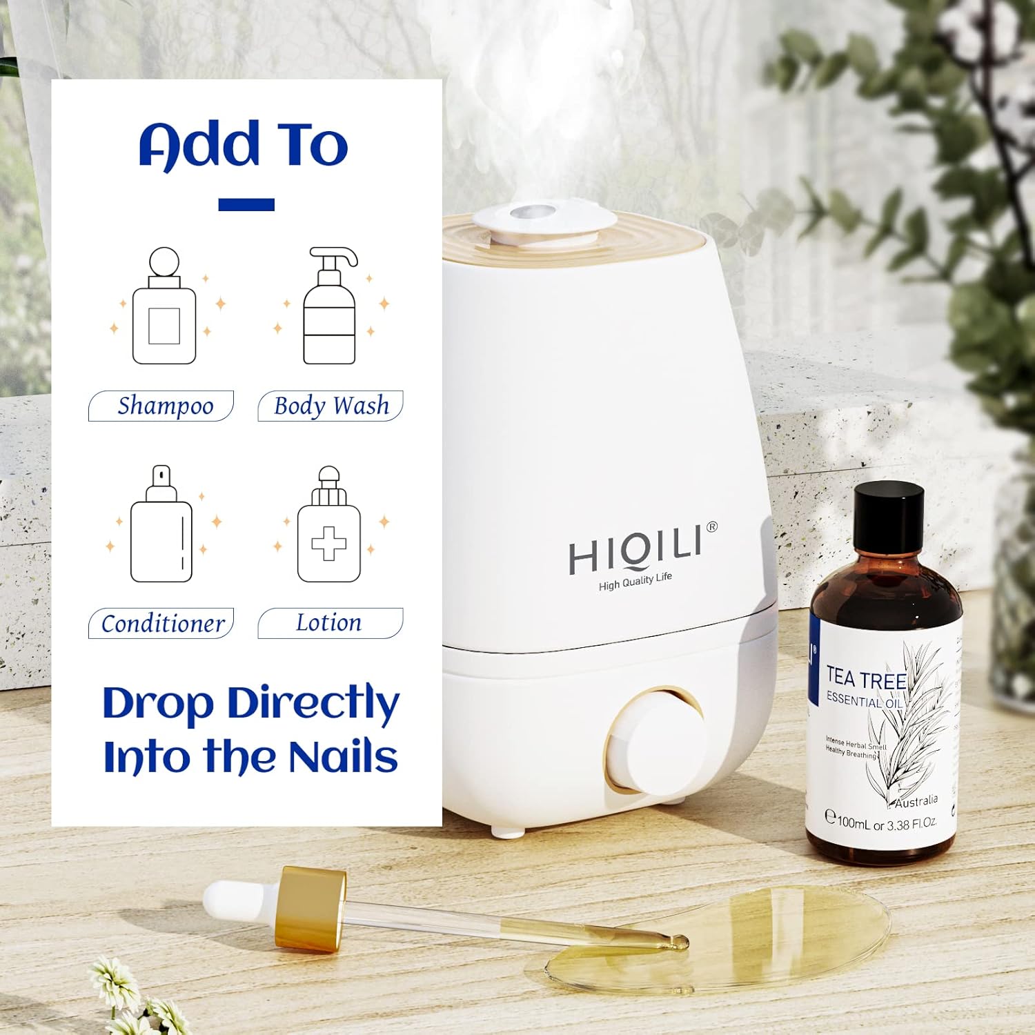 HIQILI Tea Tree Oil for Skin, Hair Restoration, Added to Shampoo, Body Wash, Foot Soak Use - 3.38 Fl Oz