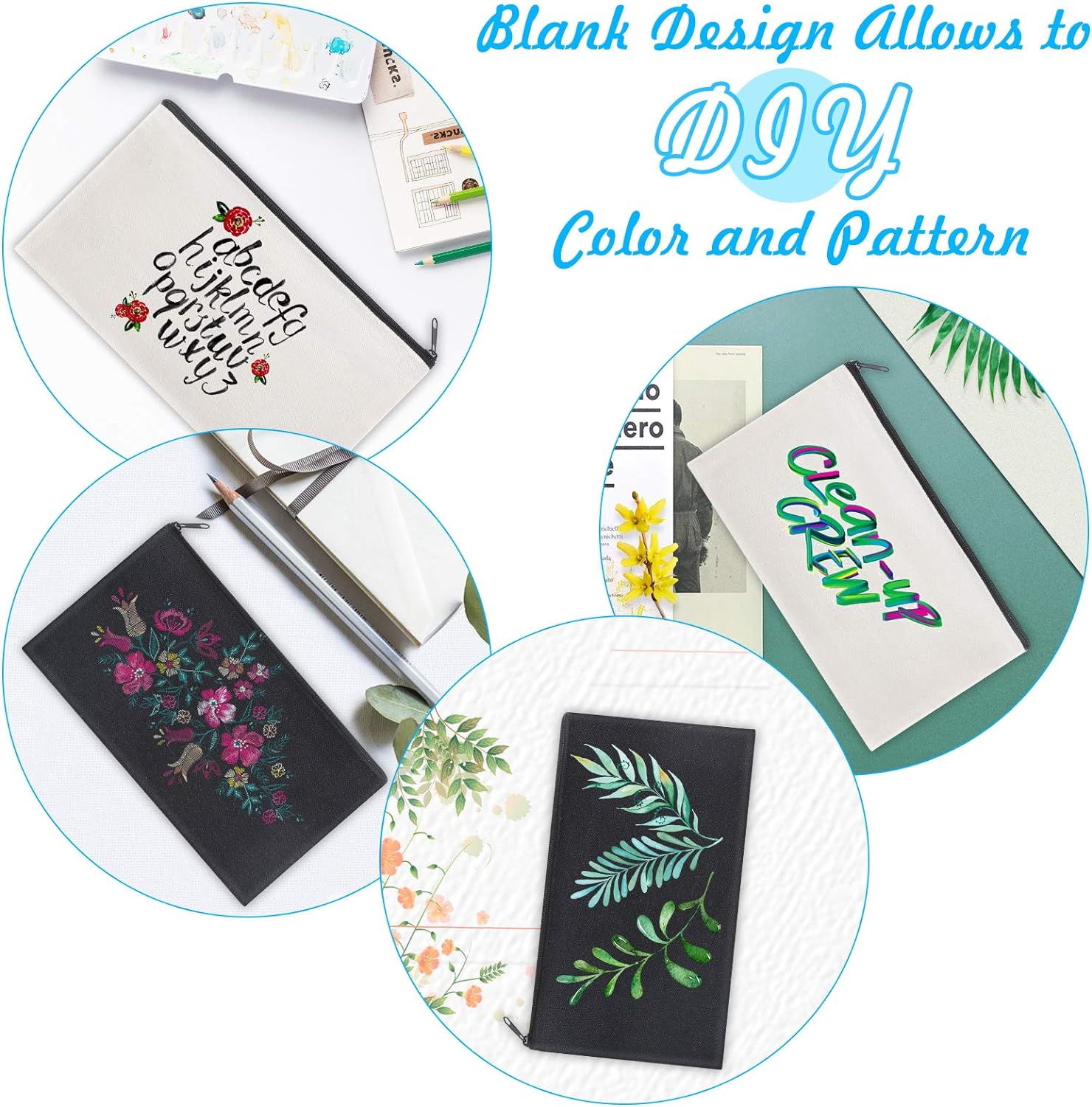 12 Pieces White Cotton Canvas Makeup Bag, Multipurpose Cosmetic Bag with Zipper Travel Toiletry Pouch, Blank DIY Craft Bag (White, L)