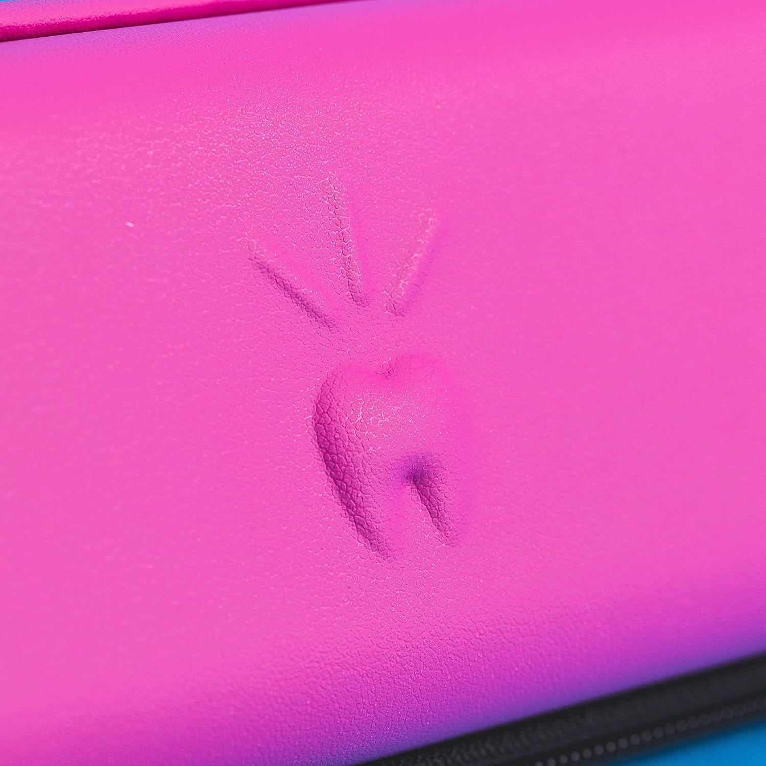 - SLEEK TOOTHBRUSH CASE – This 10” x 1.5” x 2.5” case comes in two vibrant colors – blue and pink. The case and zipper are embossed with the Triple Bristle tooth to sport the Triple Bristle lifestyle in a sleek and elegant way.