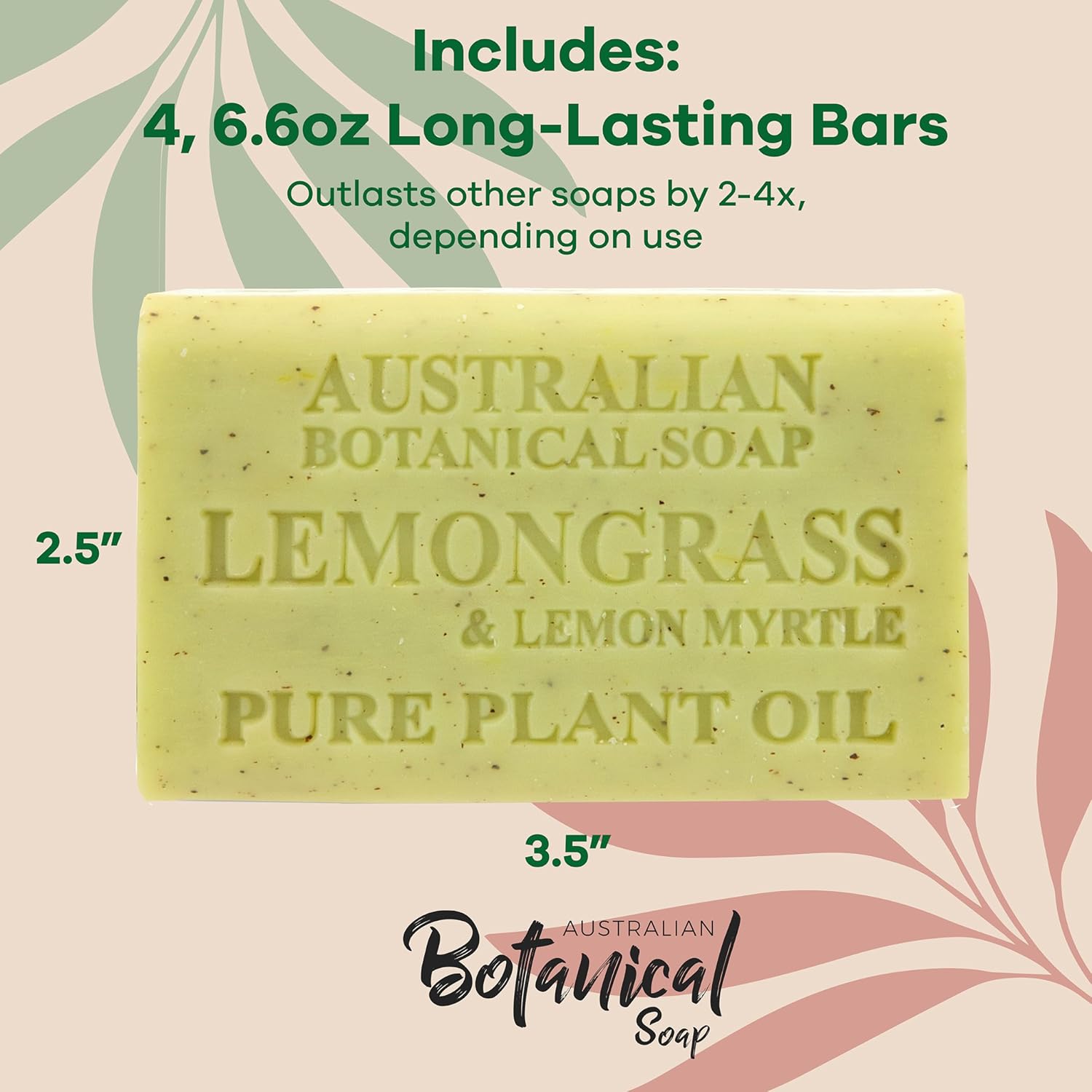 Australian Botanical Soap Lemongrass and Lemon Myrtle 6.6 oz Luxury Soap Bars Enriched with Shea Butter, Pack of 4