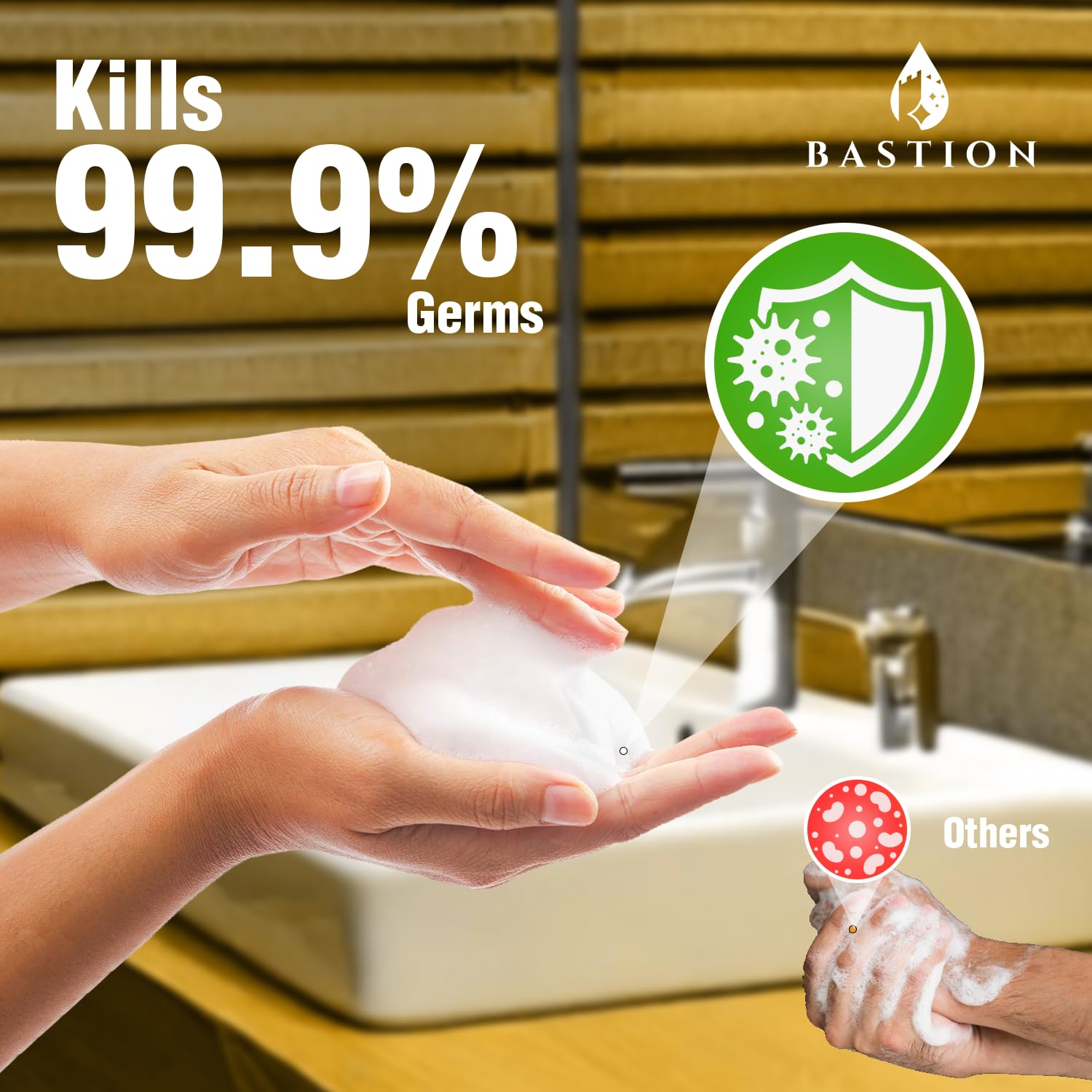 - FAMILY & PET SAFE - Keep yourself and your loved ones safe and healthy. Bastion Antibacterial Foaming Hand Soap is FREE of parabens, phthalates, triclosan, and formaldehyde. PH balanced, this non-toxic formula is non-irritating, making it ideal for folks with sensitive skin.