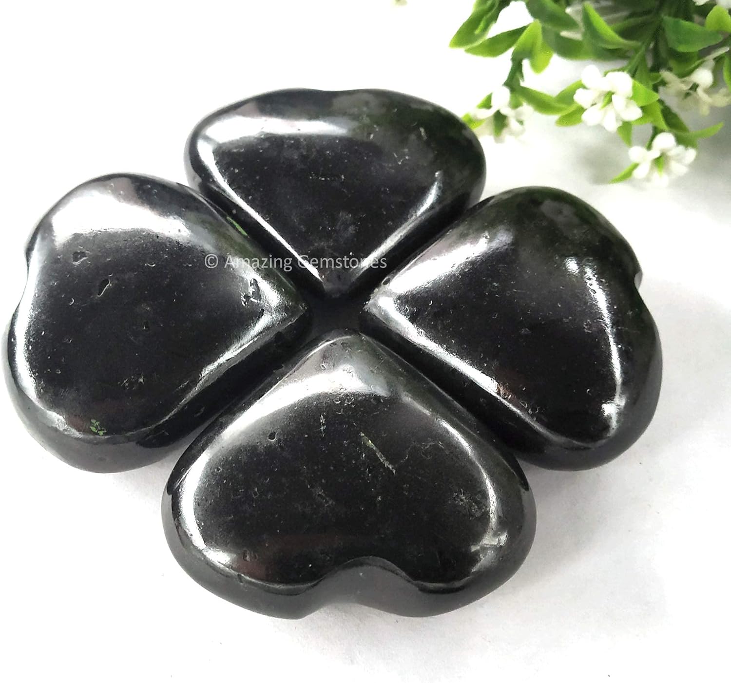 Amazing Gemstone Black Tourmaline Crystal Heart Palm Stone - Pocket Massage Worry Stone for Natural Body Chakra Balancing, Reiki Healing and Crystal Grid