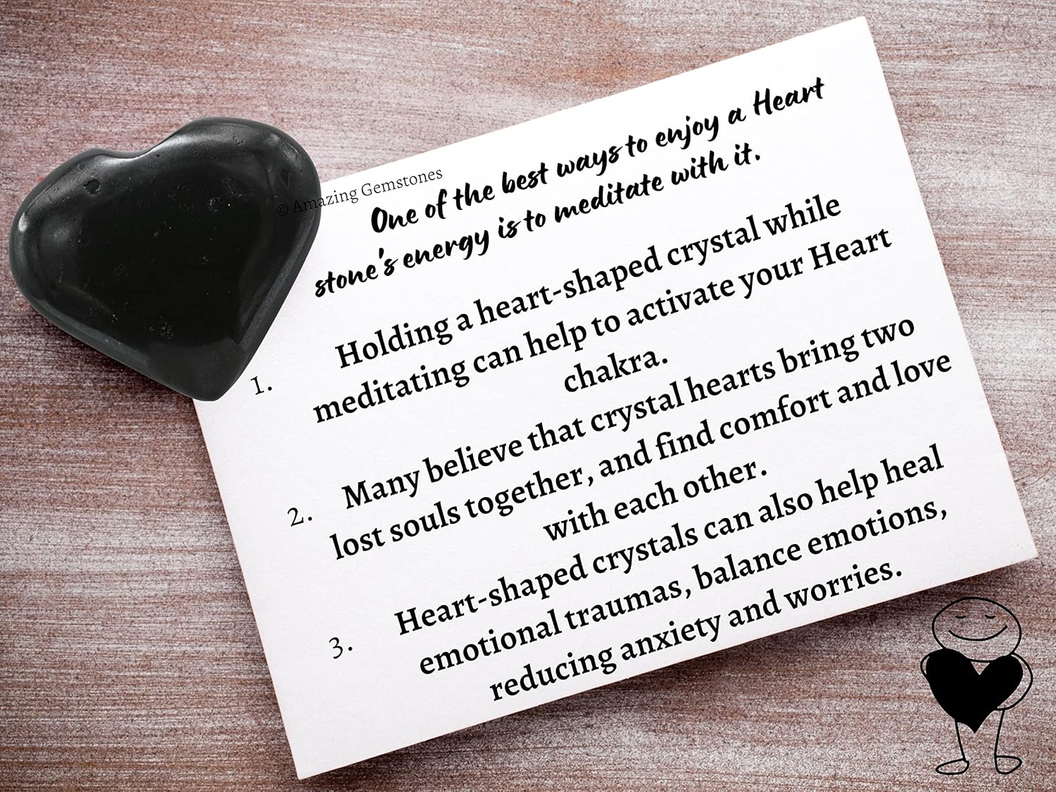 - Black Tourmaline Crystal Heart Palm Worry Stones are polished heart shaped stones that can be used for Back, Neck, Face and Feet Massage therapy, Chakra Balancing, Reiki Healing, Crystal Grid Meditation and many other esoteric healing practices.