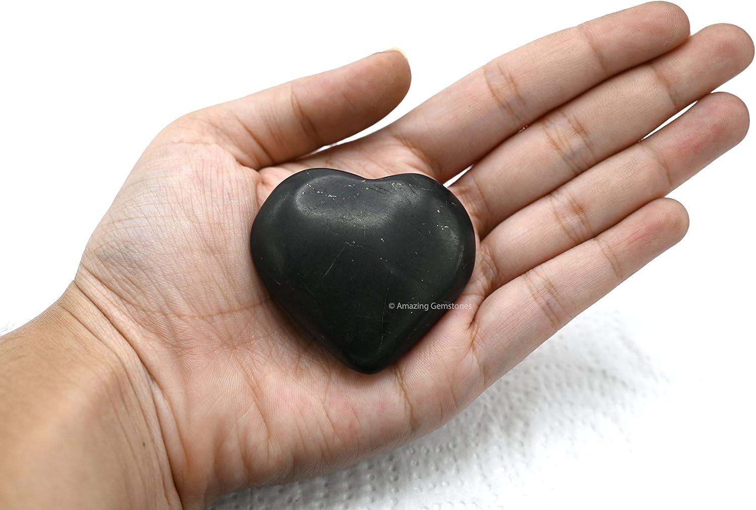Amazing Gemstone Shungite Crystal Heart Palm Stone - Pocket Massage Worry Stone for Natural Body Chakra Balancing, Reiki Healing and Crystal Grid