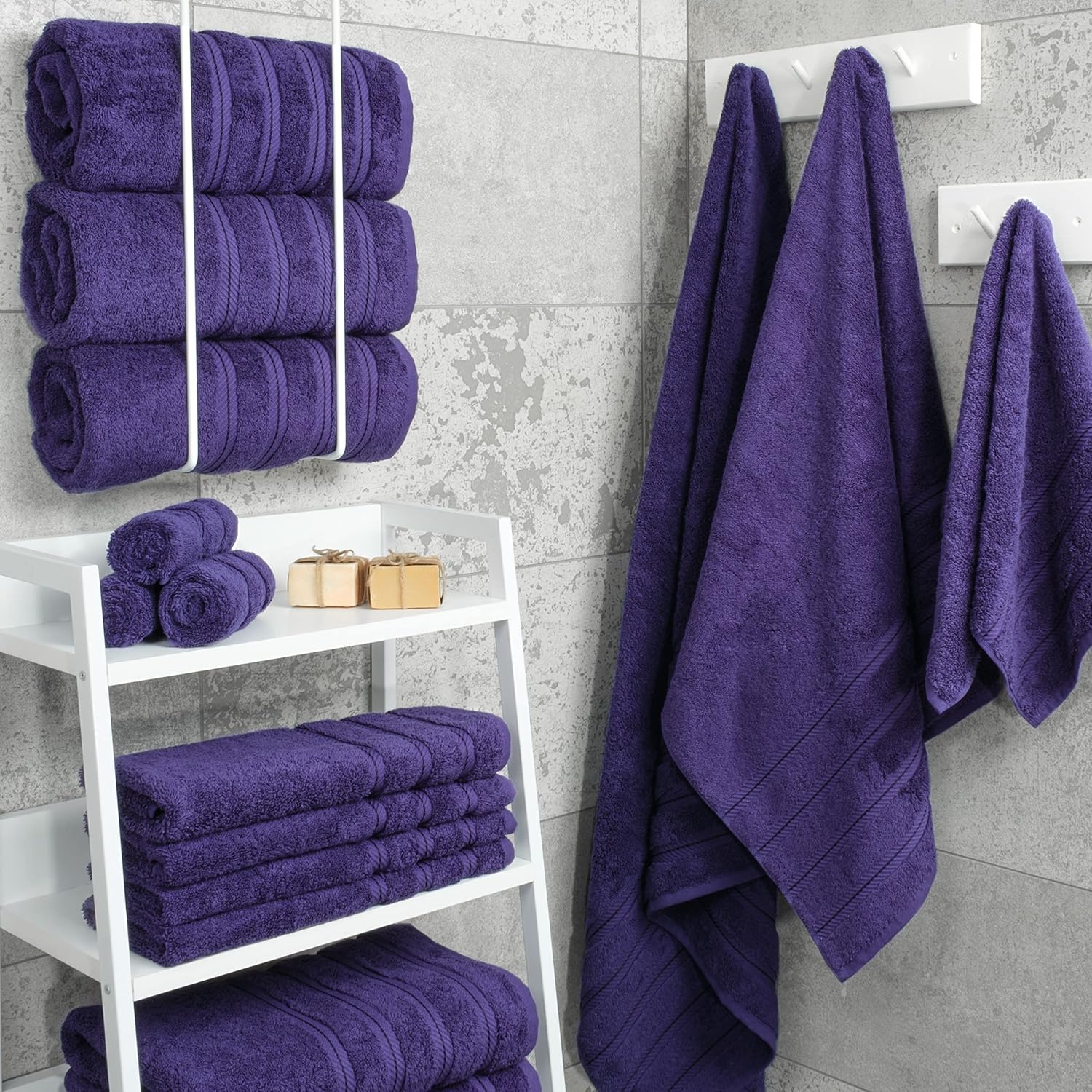 American Soft Linen Luxury 4 Piece Bath Towel Set, 600 GSM 100% Cotton Turkish Bath Towels for Bathroom, 27x54 in Extra Large Bathroom Shower Towels, Purple