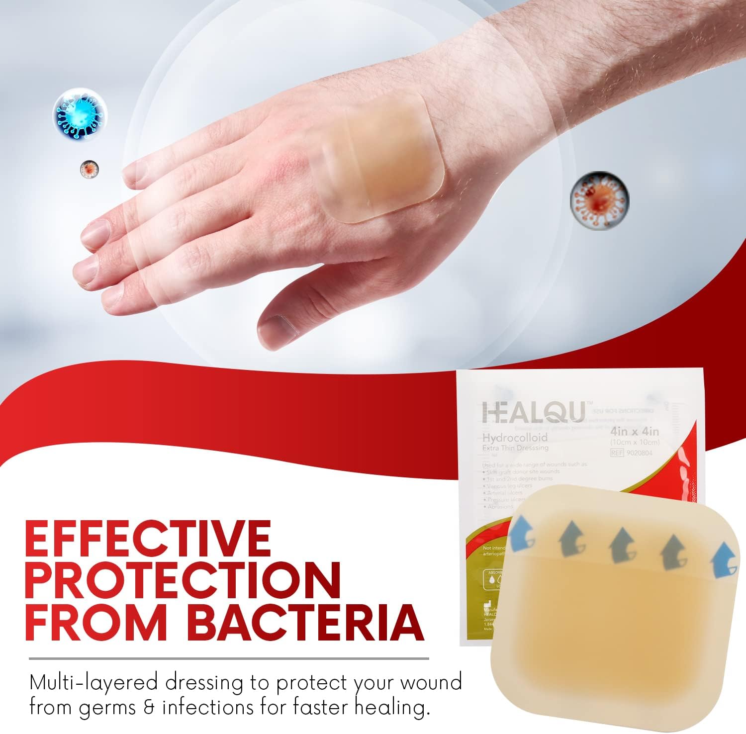 - MEDICAL-GRADE WOUND DRESSING - Healqu Hydrocolloid Wound Dressing is generally indicated for superficial wounds with low amounts of drainage. It is specifically designed to aid and protect clean and uninfected wounds – ideal for bed sores, cuts, ulcers, burns, and abrasions