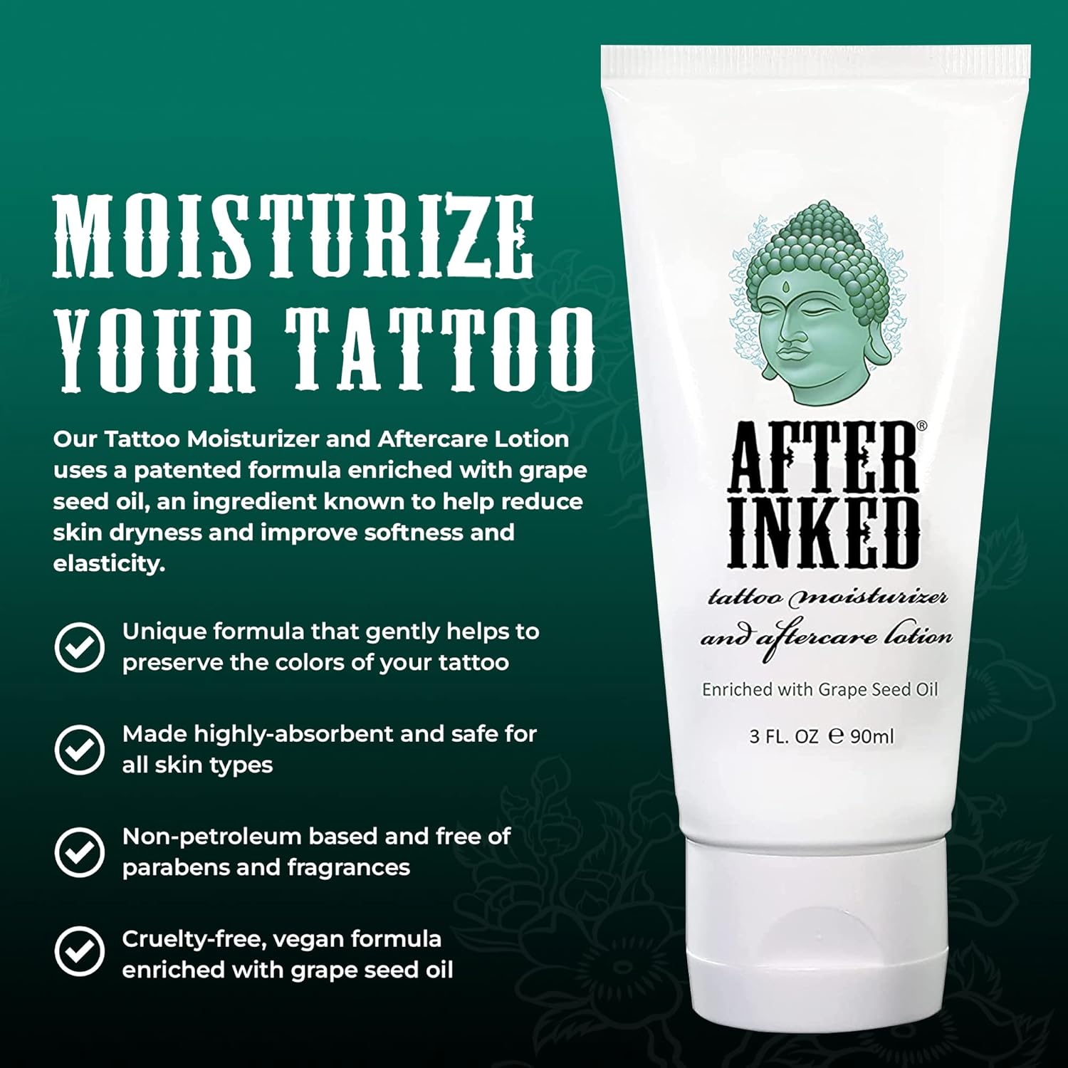 - USED BY PROFESSIONAL TATTOO ARTISTS: Our After Inked tattoo aftercare bundle is used by professional and world-famous tattoo artists, and PMU artists. Our tattoo moisturizer and aftercare lotion is the exclusive tattoo aftercare of the TV show Ink Master. Level up your tattoo game with After Inked premium skincare products.