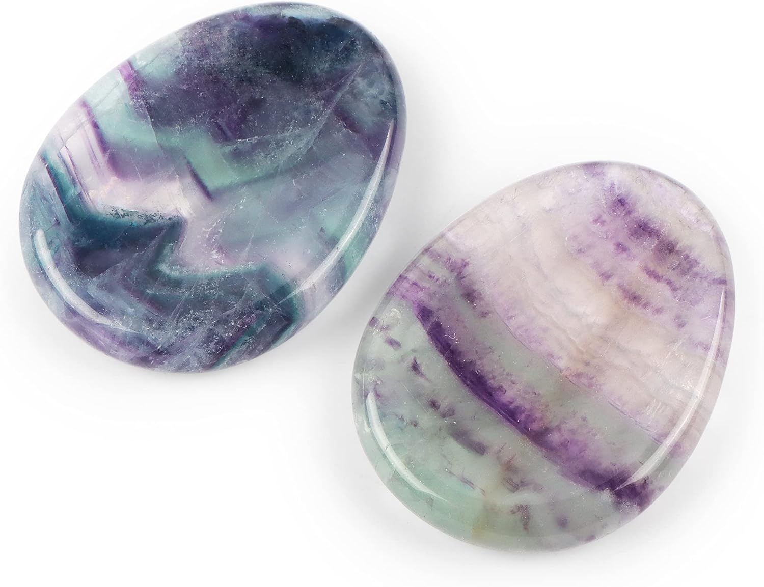 - (Size): Approximate size. 1.5". Please note that each rainbow fluorite worry stone is unique and has its own beautiful characteristics, so you will receive a crystal worry stone similar to the picture.