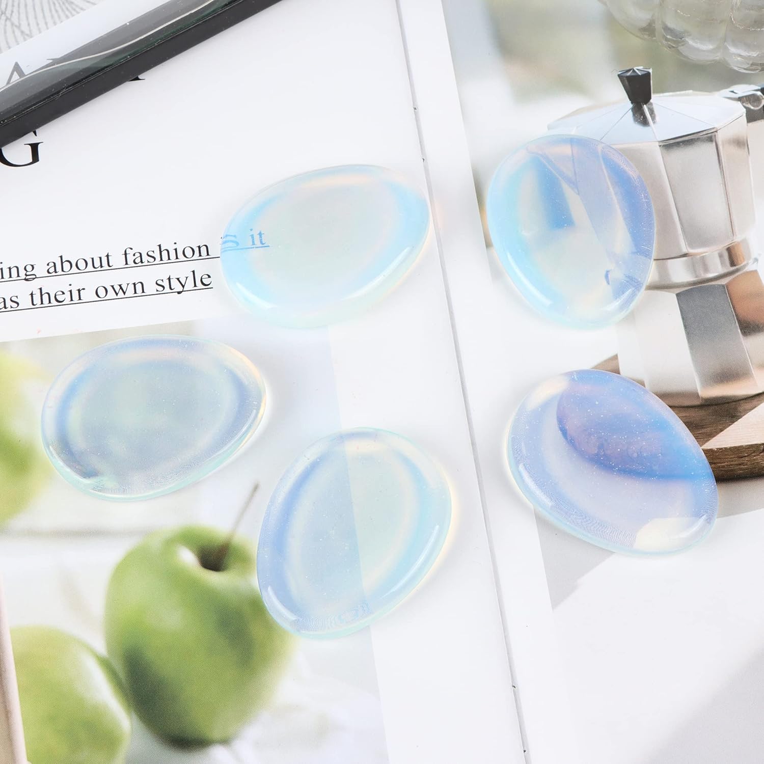 - (Gem function): Material: (Opalite) The thumb stone is a spiritual relaxation stone for meditation. It usually has a groove for thumb relaxation or anxiety relief. Carry it with you and hold the stone when you feel pressured. It is convenient to carry pockets and wallets. Or a small bag, when you feel pressure, a light touch will produce a strong healing vibration and clear the atmosphere of negative energy.